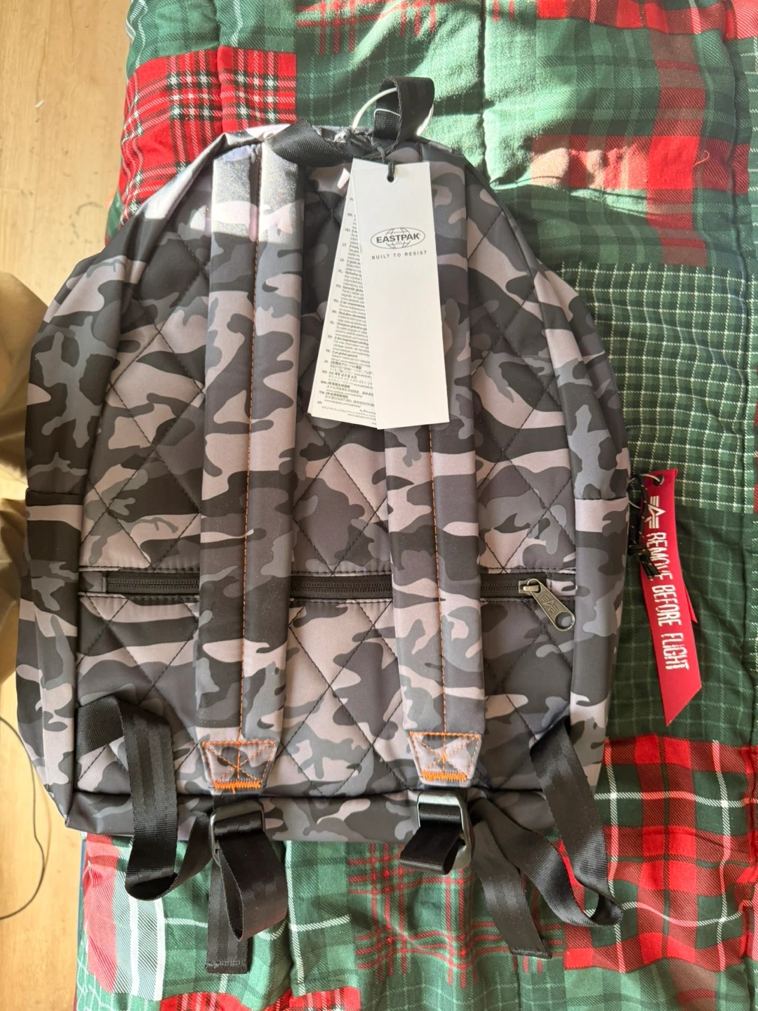 This is an Eastpak x Alpha Industries backpack in a cool camo pattern! It's in great condition and ready for your next adventure. The backpack features a durable design and a spacious interior, perfect for carrying books, gear, or travel essentials. It's a stylish and functional choice!
