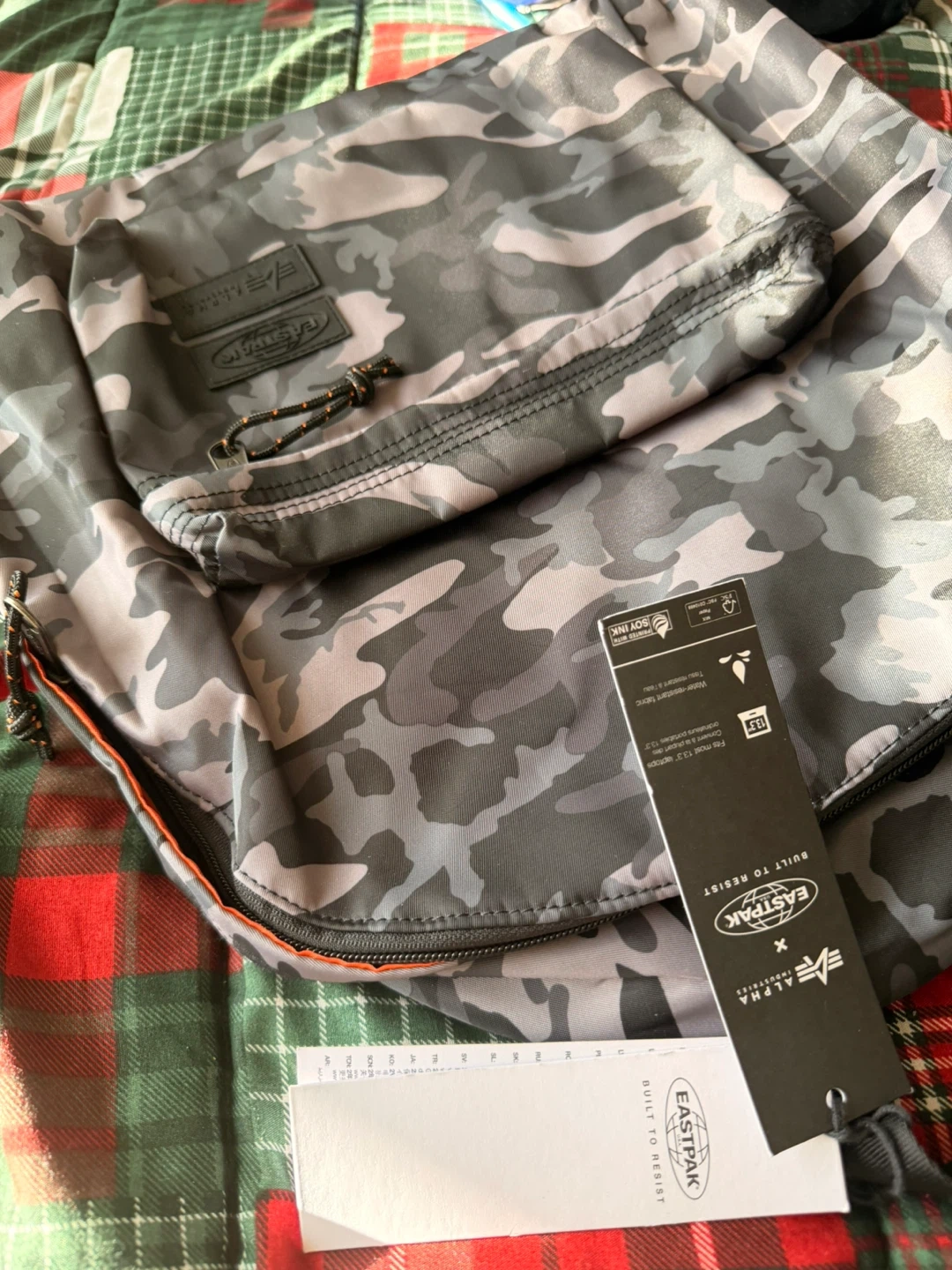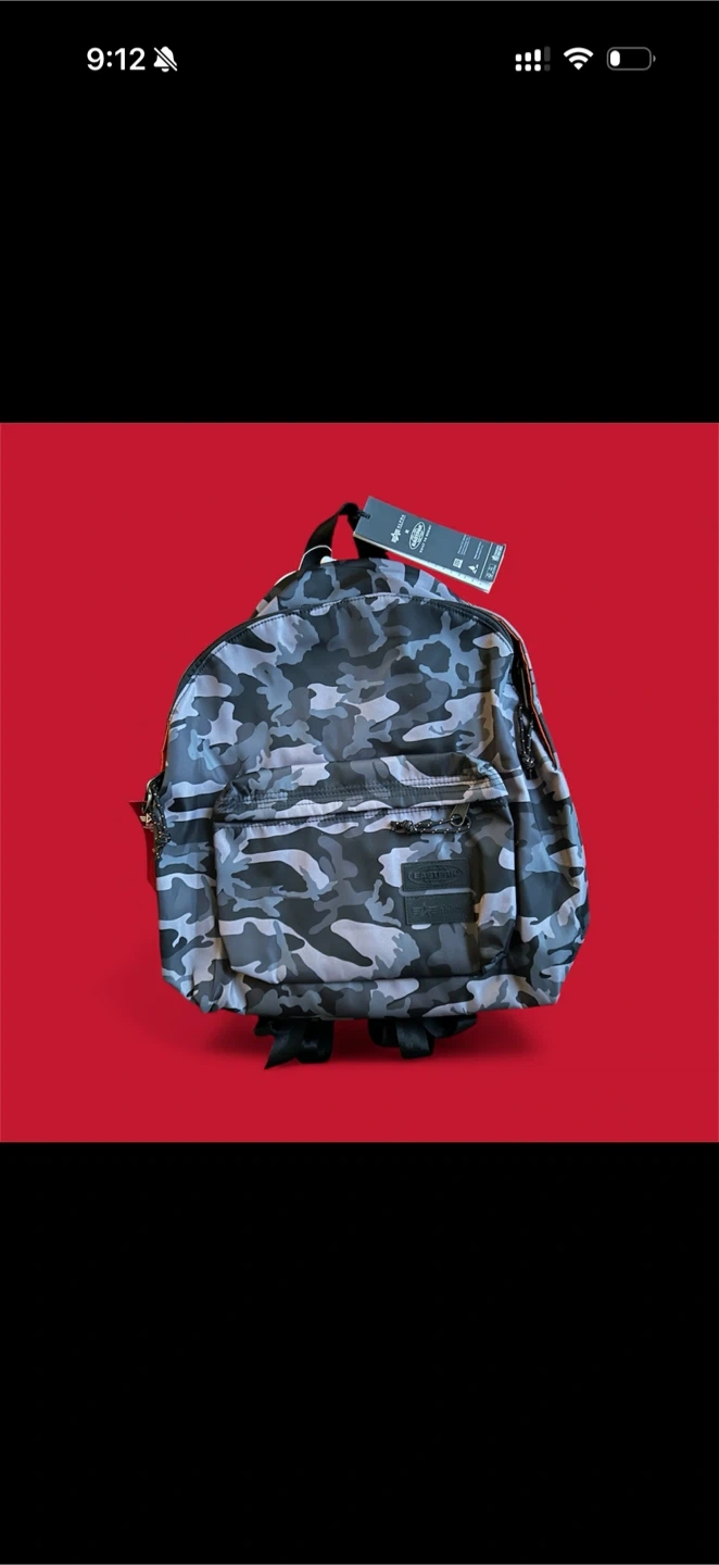 This is an Eastpak x Alpha Industries backpack in a cool camo pattern! It's in great condition and ready for your next adventure. The backpack features a durable design and a spacious interior, perfect for carrying books, gear, or travel essentials. It's a stylish and functional choice!