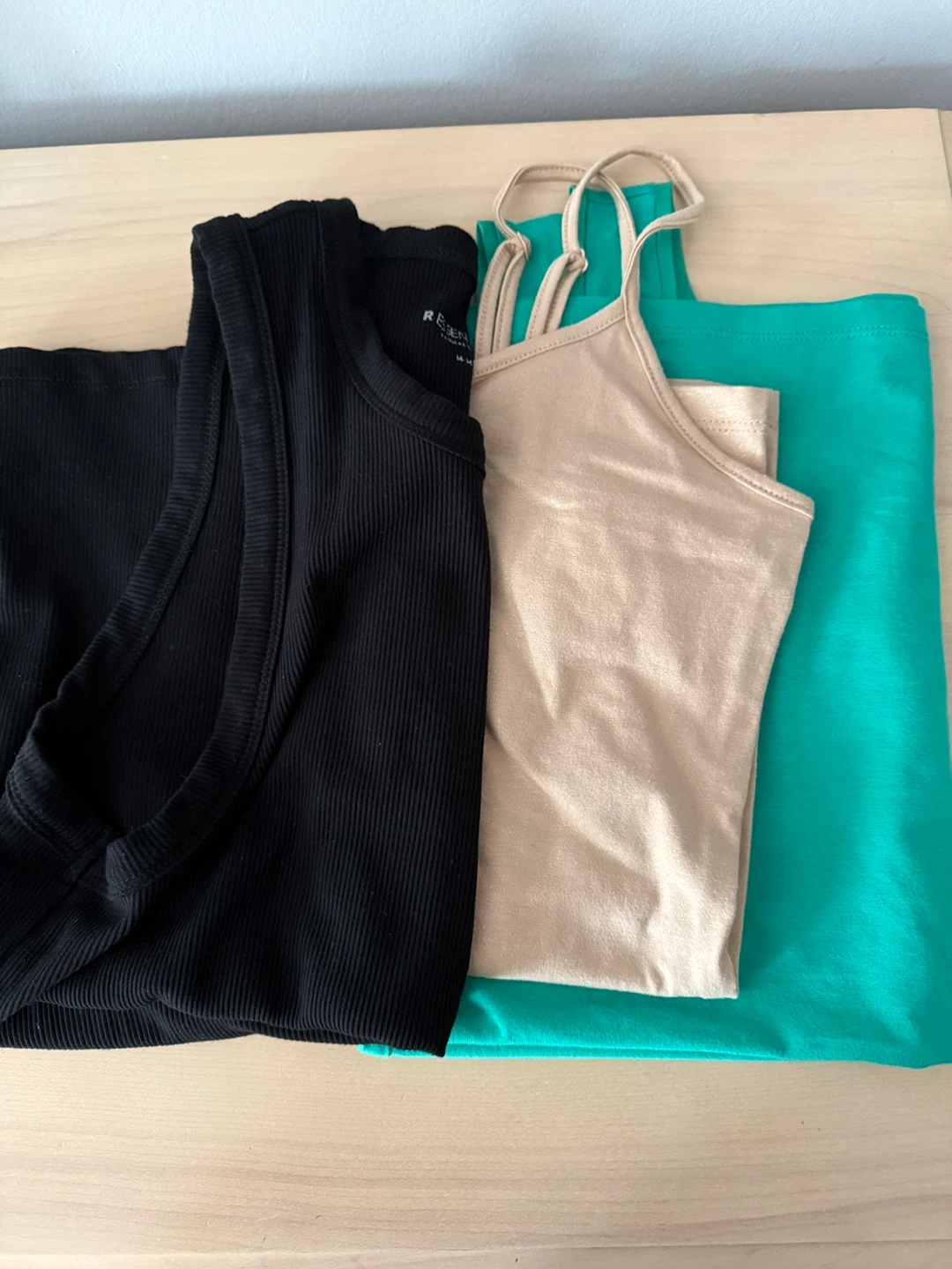 Selling a set of three Regen ribbed tank tops! You'll get one in black, one in beige, and one in a vibrant green. Perfect for layering or wearing on their own during warmer weather 3 for $10.