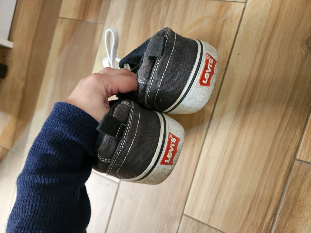 Selling a pair of Levi's canvas shoes in size 10. They're in good condition and ready for a new owner! The shoes are black with white laces and the Levi's logo on the side and back.