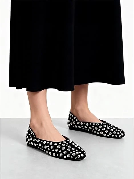 STYLISH:Elevate your basic outfits with sophisticated stud detailing along the shoe perimeter The classic round toe design offers both timeless style and comfortable toe room