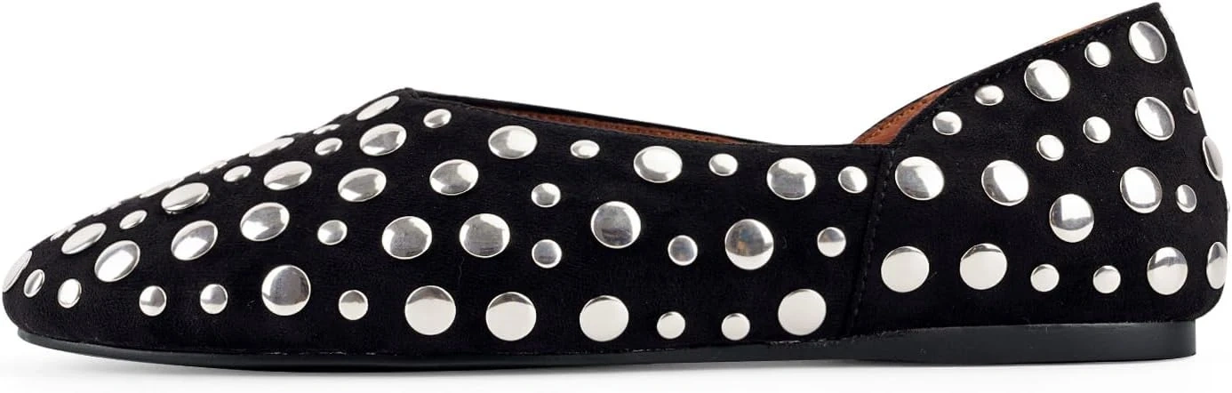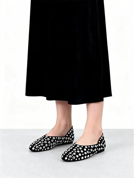 STYLISH:Elevate your basic outfits with sophisticated stud detailing along the shoe perimeter The classic round toe design offers both timeless style and comfortable toe room