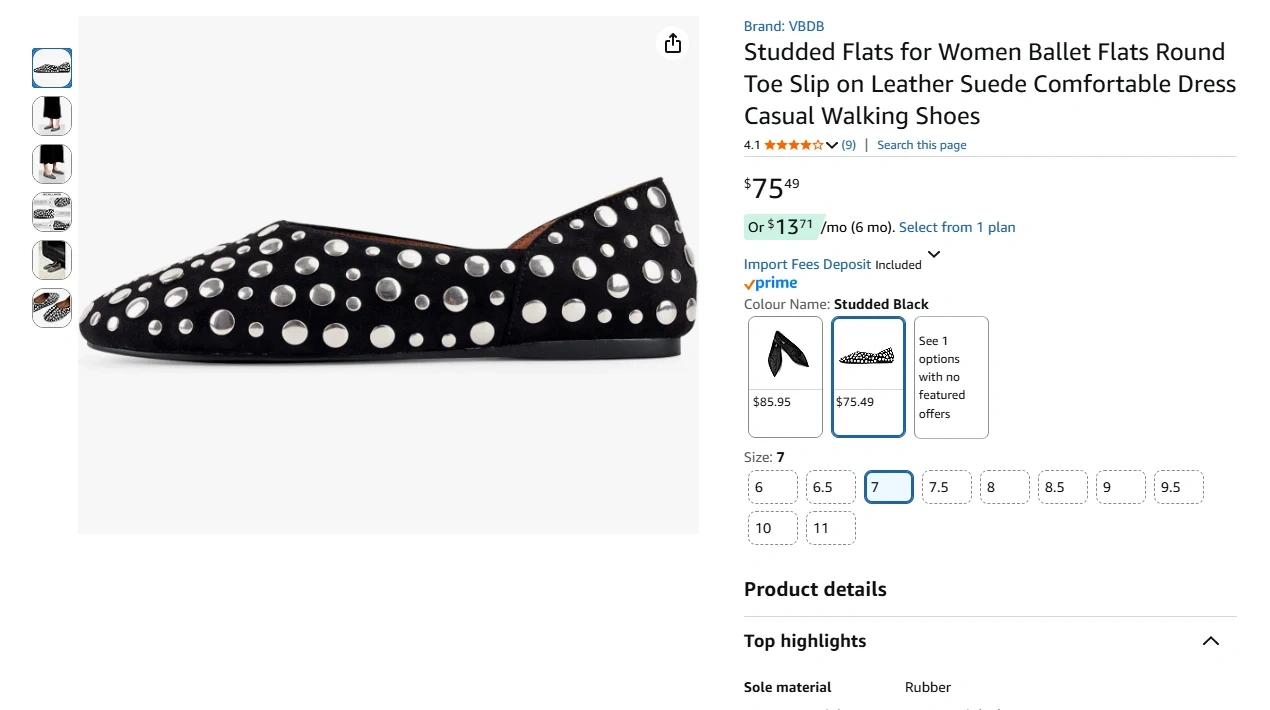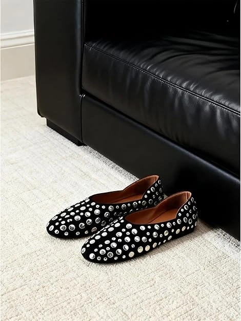 Studded Flats for Women Ballet Flats Round Toe Slip on Leather Suede Comfortable Dress Casual Walking Shoes, Brand New in the Box/Sealed