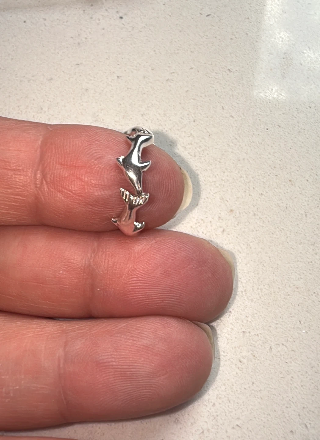 Cute dolphin ring made from 925 sterling silver. It's a fun piece for the dolphin lovers!