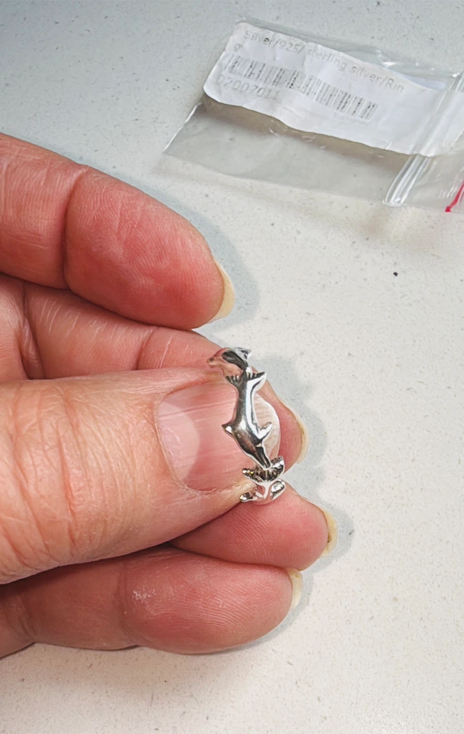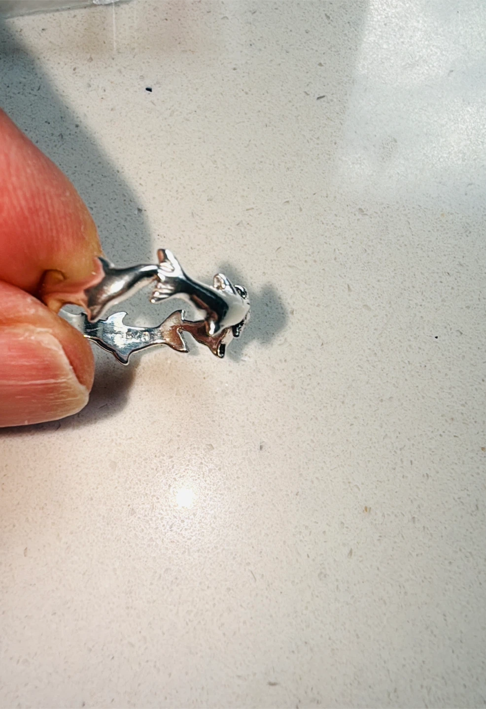 Cute dolphin ring made from 925 sterling silver. It's a fun piece for the dolphin lovers!