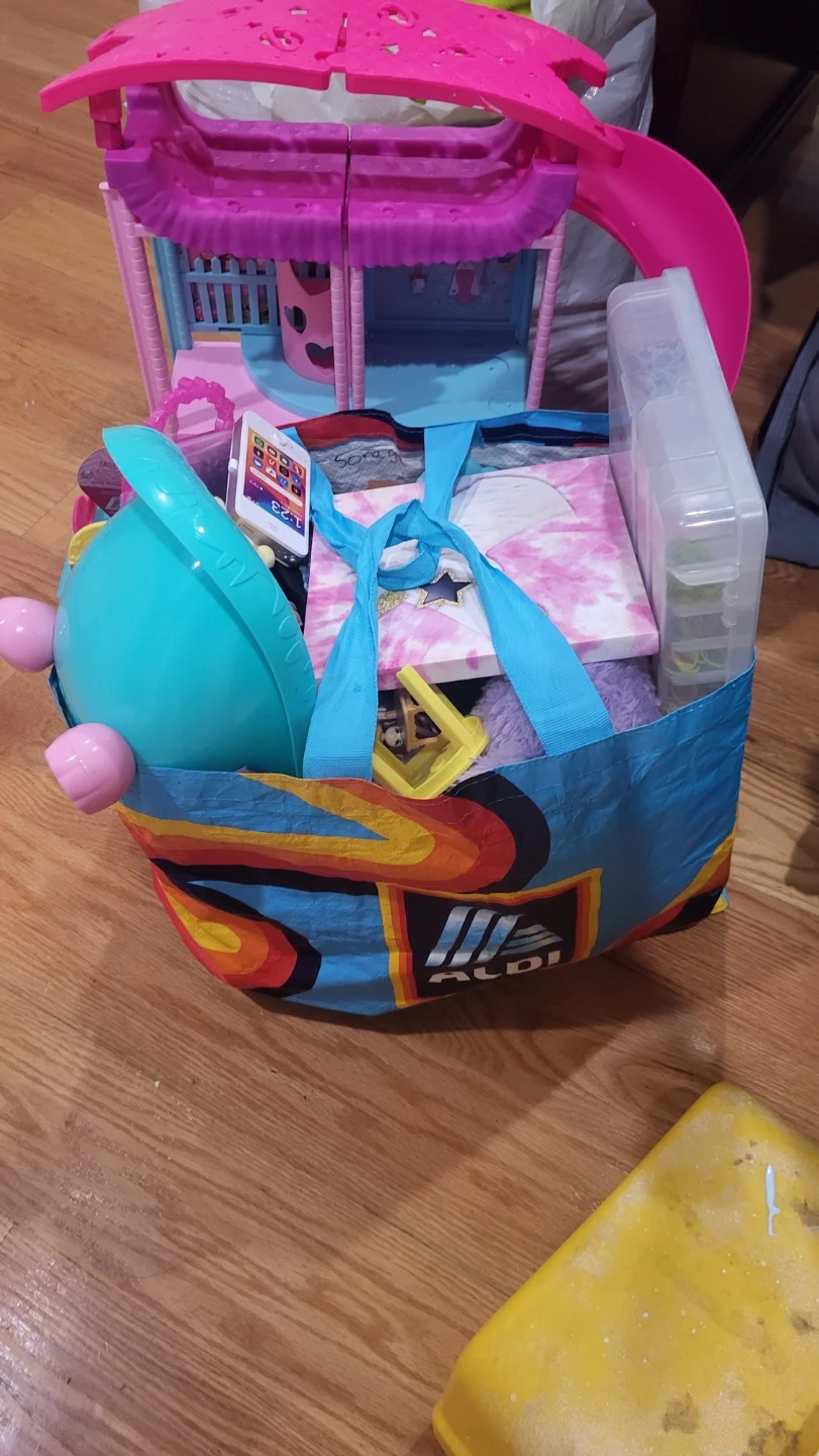 , House dollhouse playset. It's a multi-story pink and purple dollhouse with a slide. Includes various accessories. A bag full oh different type of toys , like kids purse, bracelets maker, plush and many more .It's a fun playset for kids!