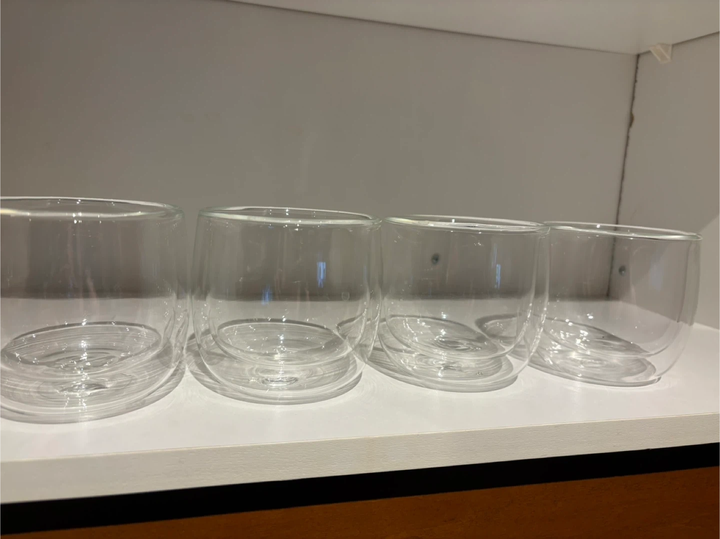 Set of 4 clear double-wall glass cups — modern, sleek design.