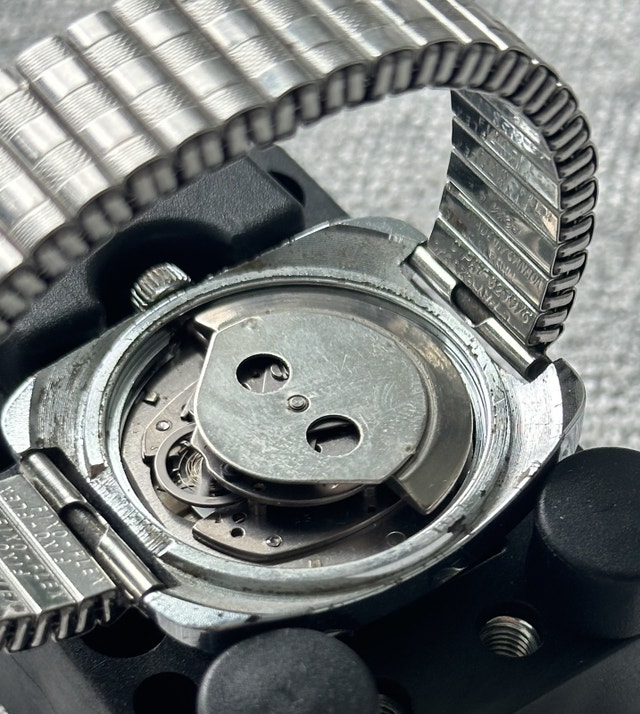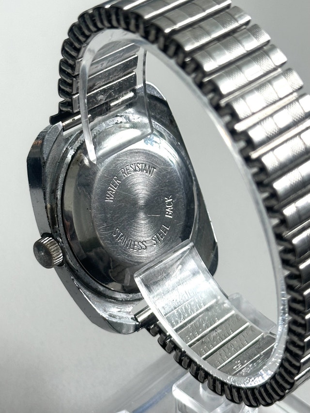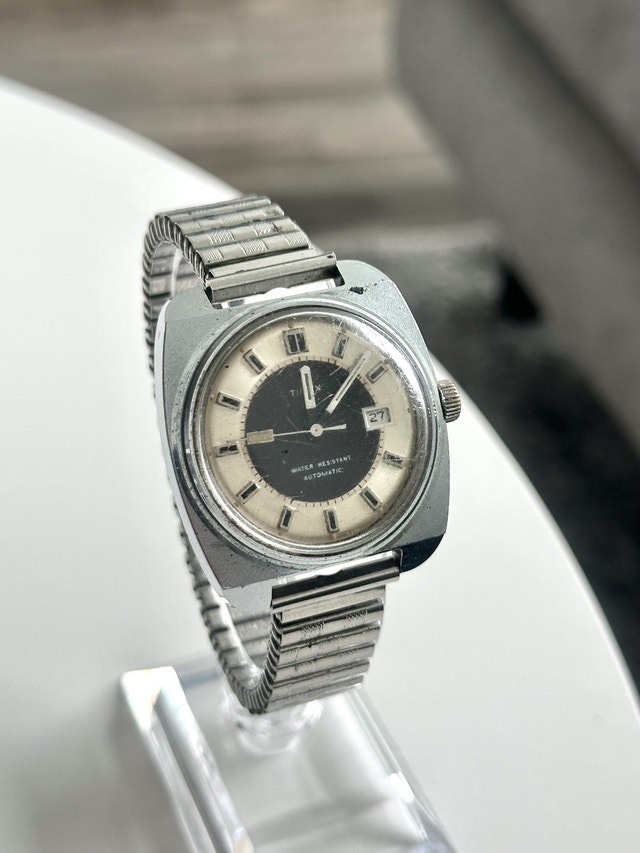 Automatic and hand-wind movement with a sweeping seconds hand and a date window at 3 o’clock. The watch shows some signs of wear for its age, including a few scuffs on the glass. It’s fully functional but currently running fast due to magnetisation. A simple, inexpensive demagnetisation will bring it back to proper timekeeping.