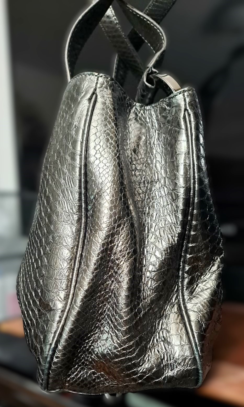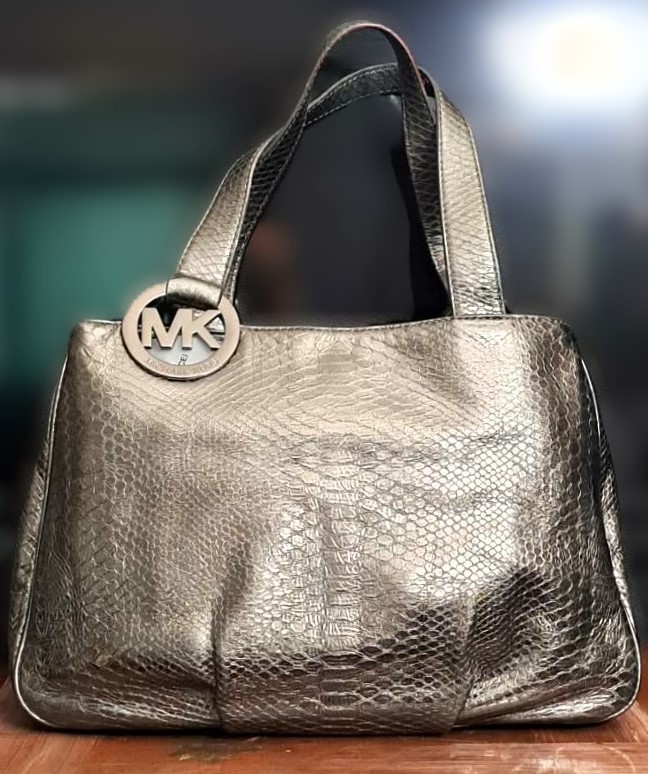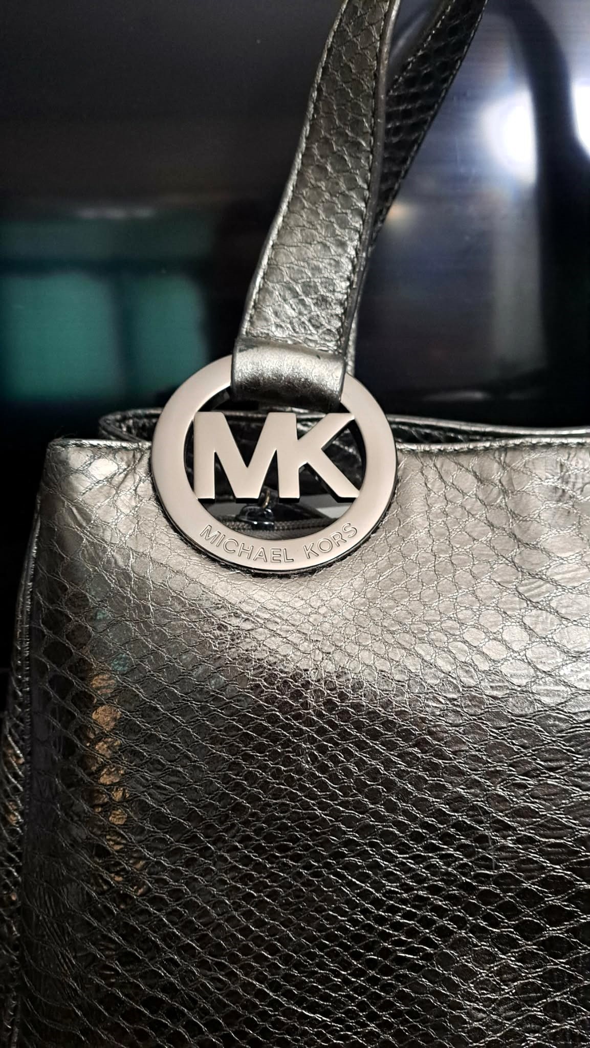 Michael Kors Lrg Tote Metallic Silver Python Embossed Like New🏆