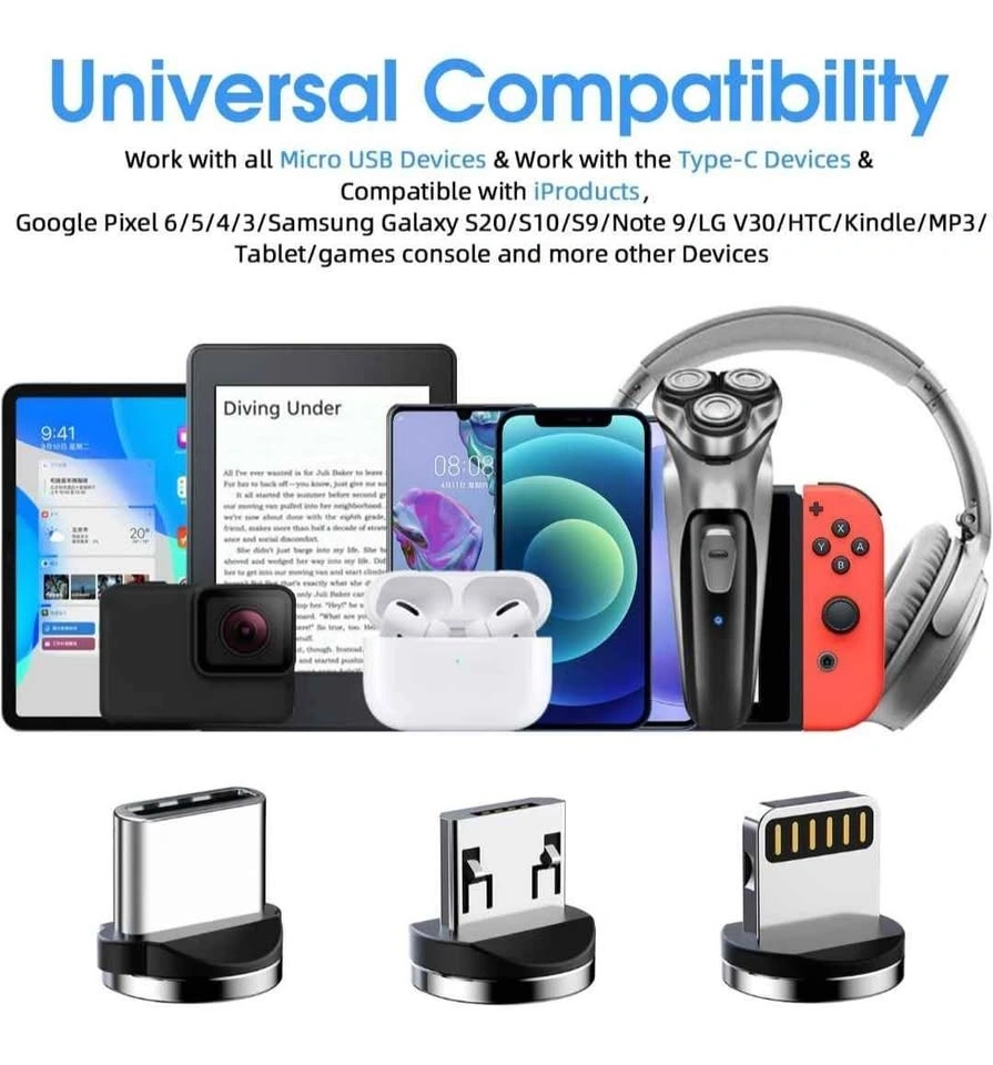 Each magnetic Phone charging cable compatible with Micro/USB-C/iProducts devices. One magnetic cable can charge three different types of devices.