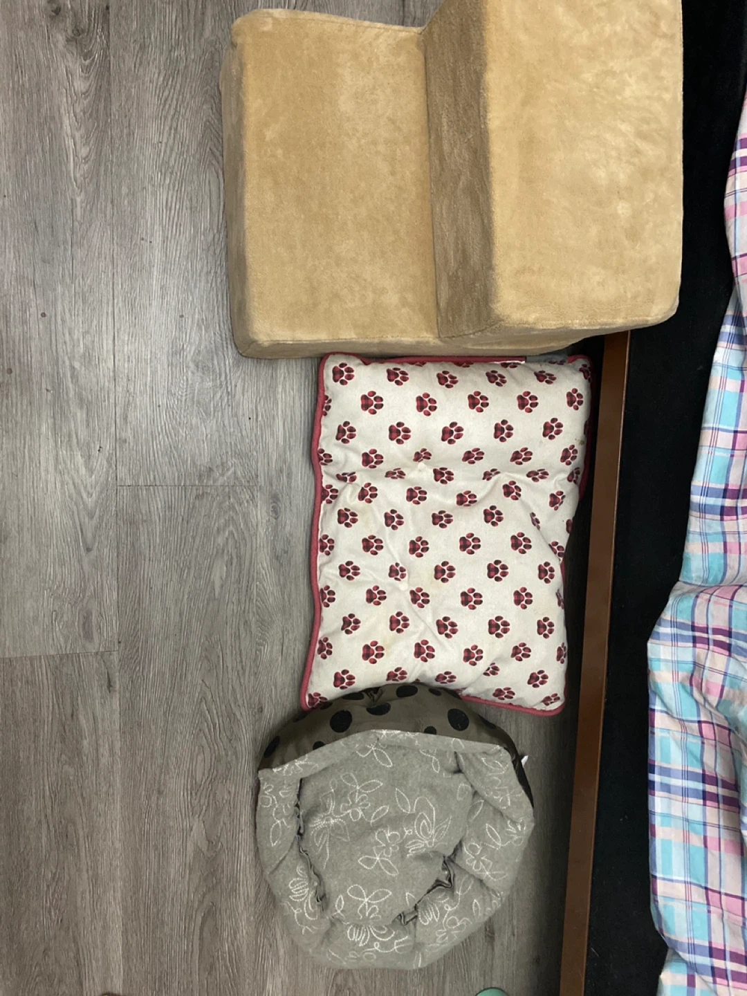 Selling a set of dog stairs and 2 pet bed. The stairs are perfect for helping your furry friend reach high places, and the bed provides a comfy spot for them to rest. Both are in great condition! All for 10$