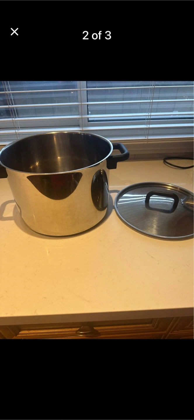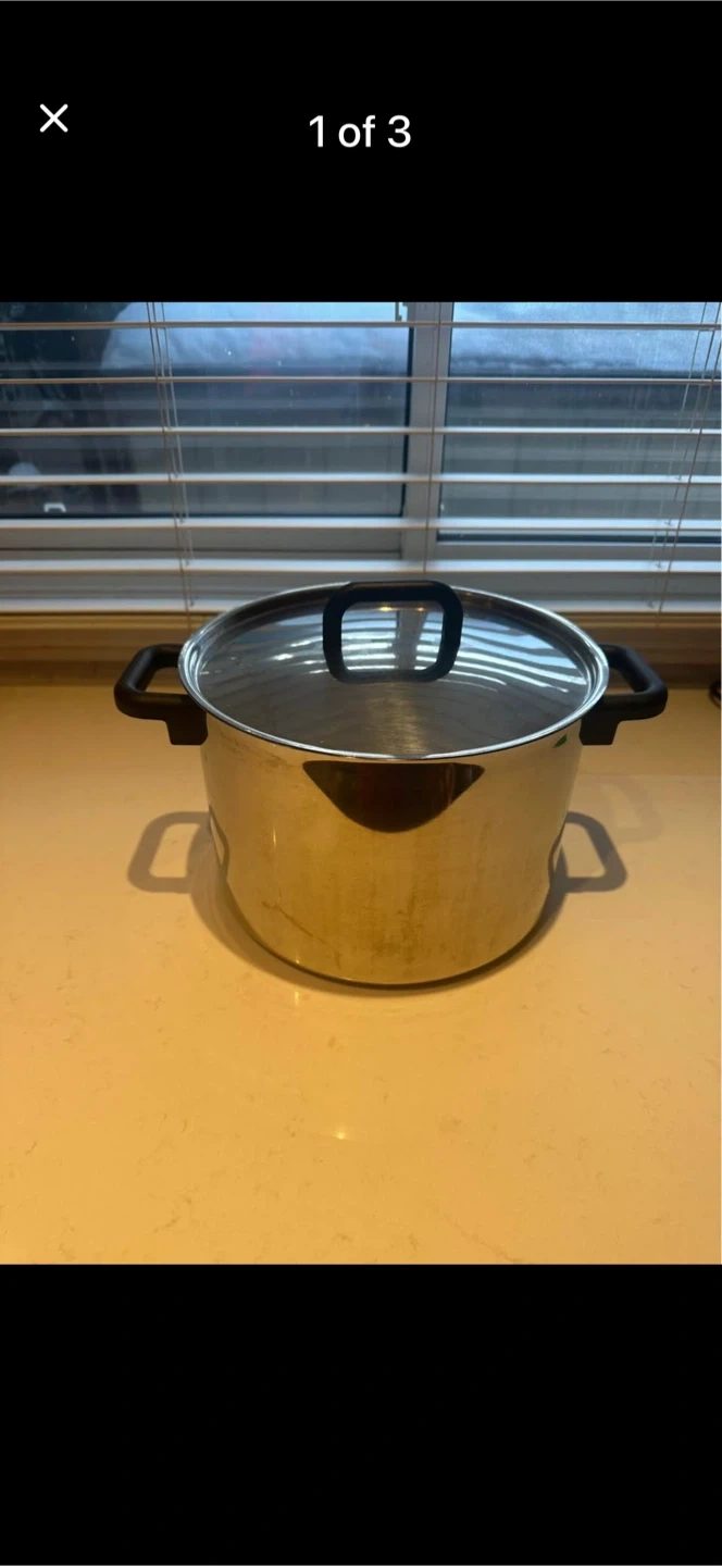 This is a large stainless steel stock pot with a glass lid. It's perfect for making soups, stews, or boiling pasta. The pot is made of durable stainless steel.