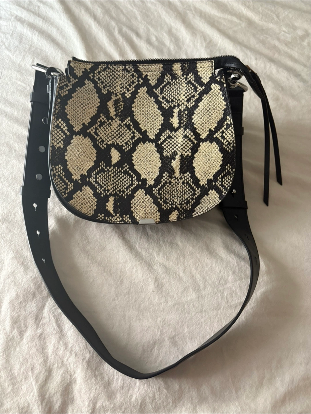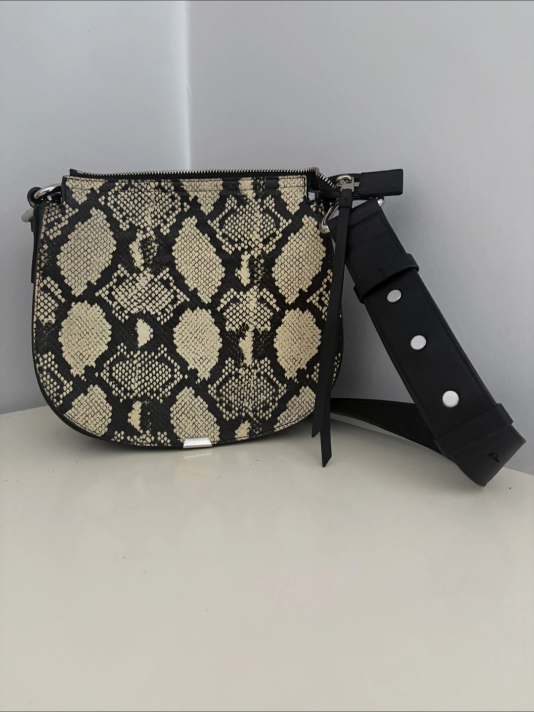 Rebecca Minkoff crossbody bag. It's in great condition and ready for a new home. The bag features a black adjustable strap and silver hardware.
