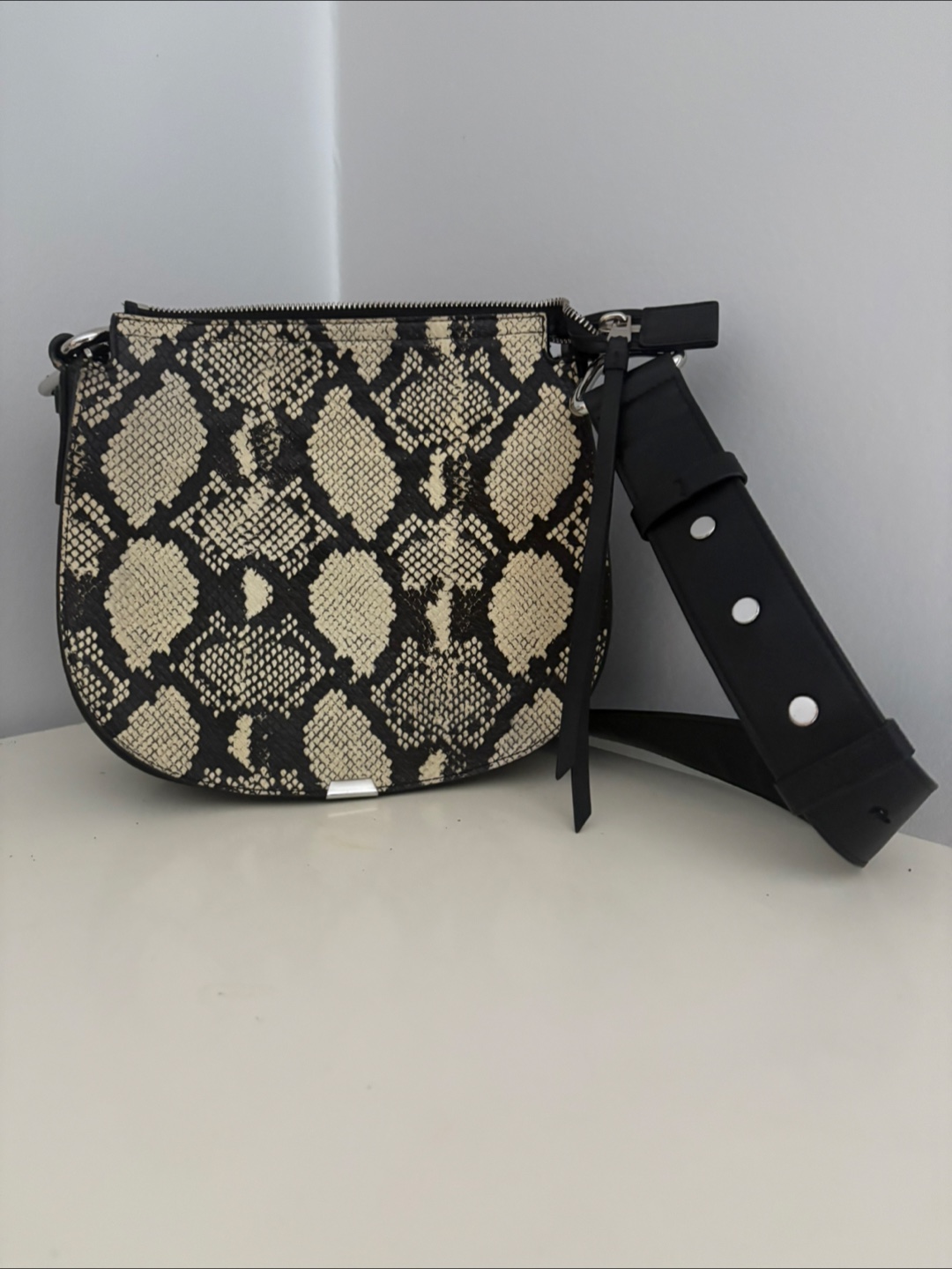 Rebecca Minkoff crossbody bag. It's in great condition and ready for a new home. The bag features a black adjustable strap and silver hardware.