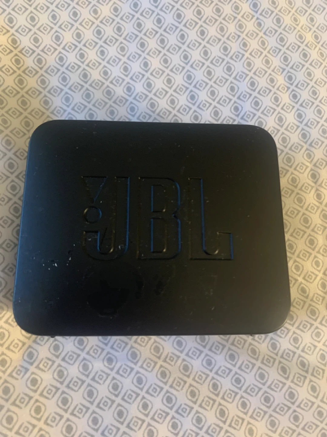 This is a black JBL GO2 portable Bluetooth speaker. It's a compact and durable speaker. Perfect for on-the-go listening!