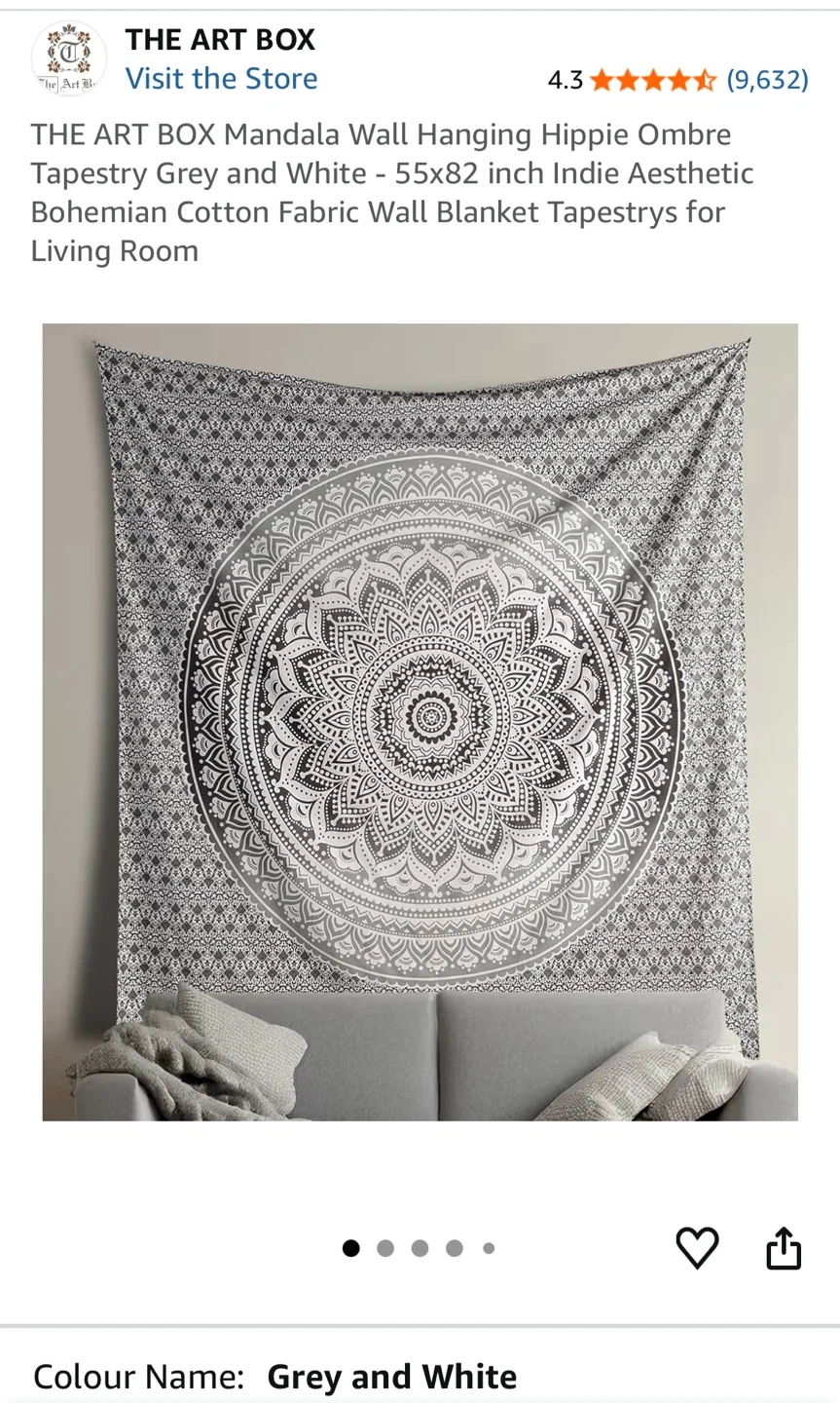 Selling a brand new Mandala Wall Hanging from The Art Box! It's grey and white, and measures 208 cm x 140 cm. This Hippie Ombre Tapestry is made of Bohemian Cotton Fabric, perfect as a wall hanging for any living space!