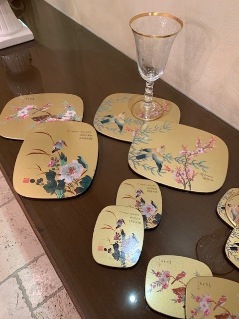 Stunning Rare Vintage Metal Trivets & Cocktail Mats in the Chinoiserie Style.