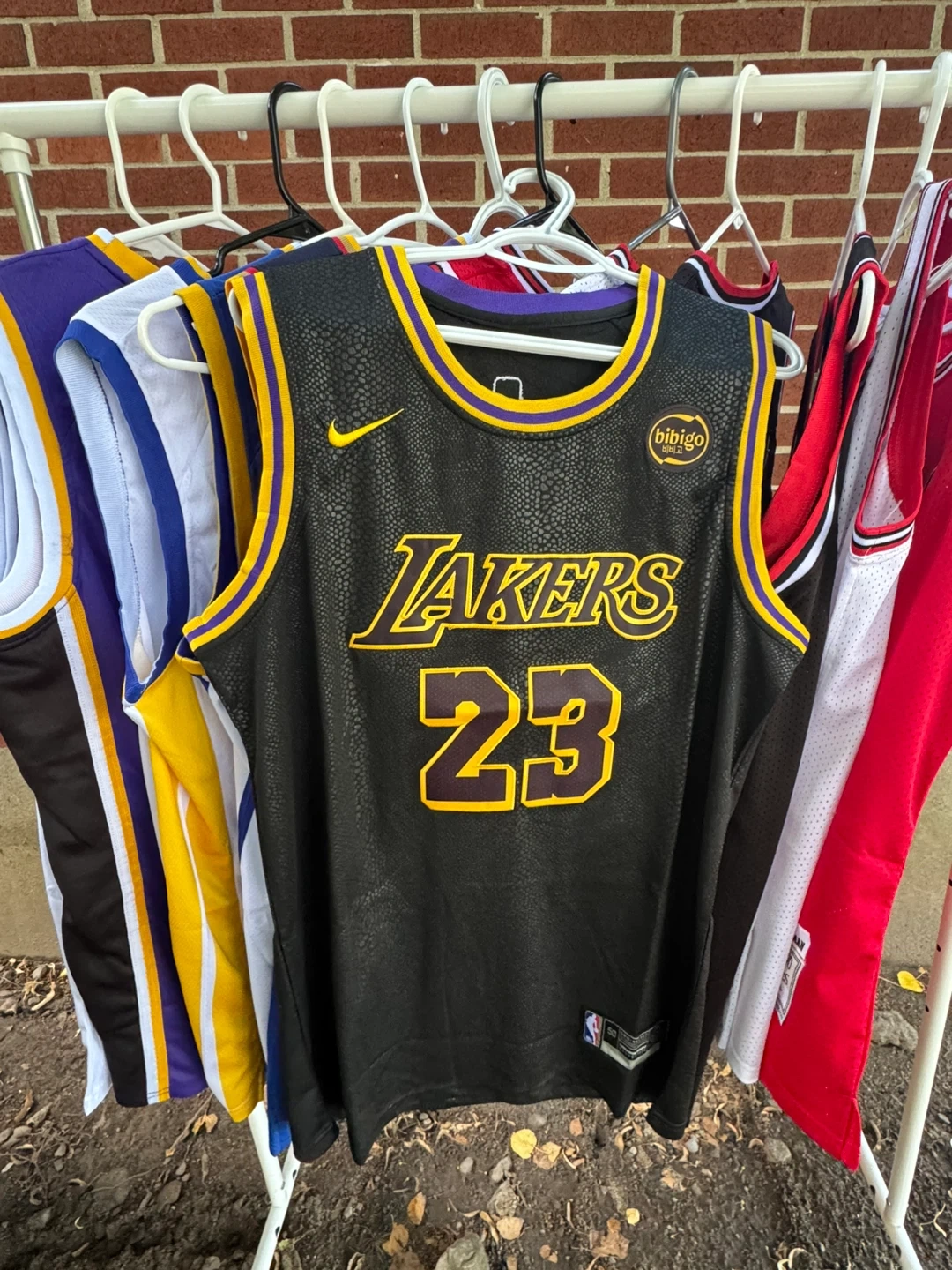 Selling a selection of Nike Lakers LeBron James #23 jerseys. Available in various colours, including black, white, and purple. All in great condition and ready for a new home!