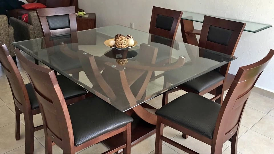 Moving sale! Imported from Mexico. Includes a glass top table and 6 chairs. The chairs no longer have their plastic covers. A side console is also available separately. Table dimensions: Width 63 in, Height 30.7 in, Depth 51.2 in. Please check my other listings for more items.