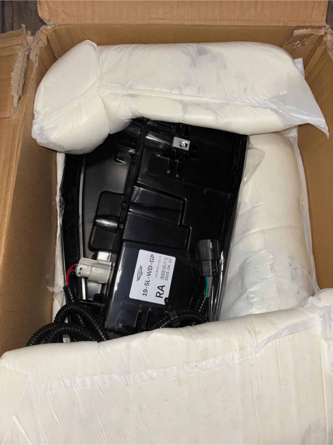 Selling a brand new aftermarket taillight assembly still in its original packaging! The label shows part number 19-SL-WD-GP. The expiration date is April 12, 2025