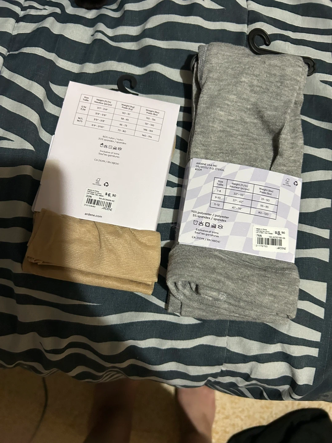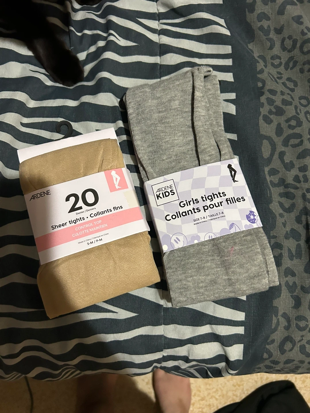 Bundle includes Ardenne Kids grey girls tights in size 7-8 and Ardenne tan sheer tights size S-M/M-L. The grey tights are 95% polyester and 5% spandex. The tan tights are 20 denier with a control top. Brand new pick up near century park area