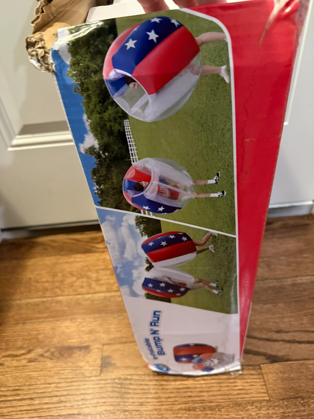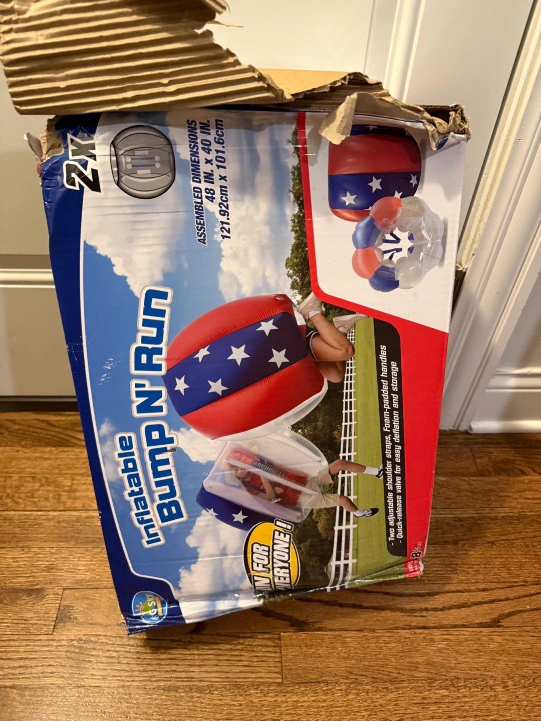 Get ready for some outdoor fun with this Big Sky Inflatable Bump N' Run set! It's designed for everyone and comes with two adjustable shoulder straps and foam-padded handles for a comfortable and secure fit. The quick-release valve makes inflation and deflation a breeze. The assembled dimensions are 48 in x 40 in, or 121.92cm x 101.6cm. Box included!