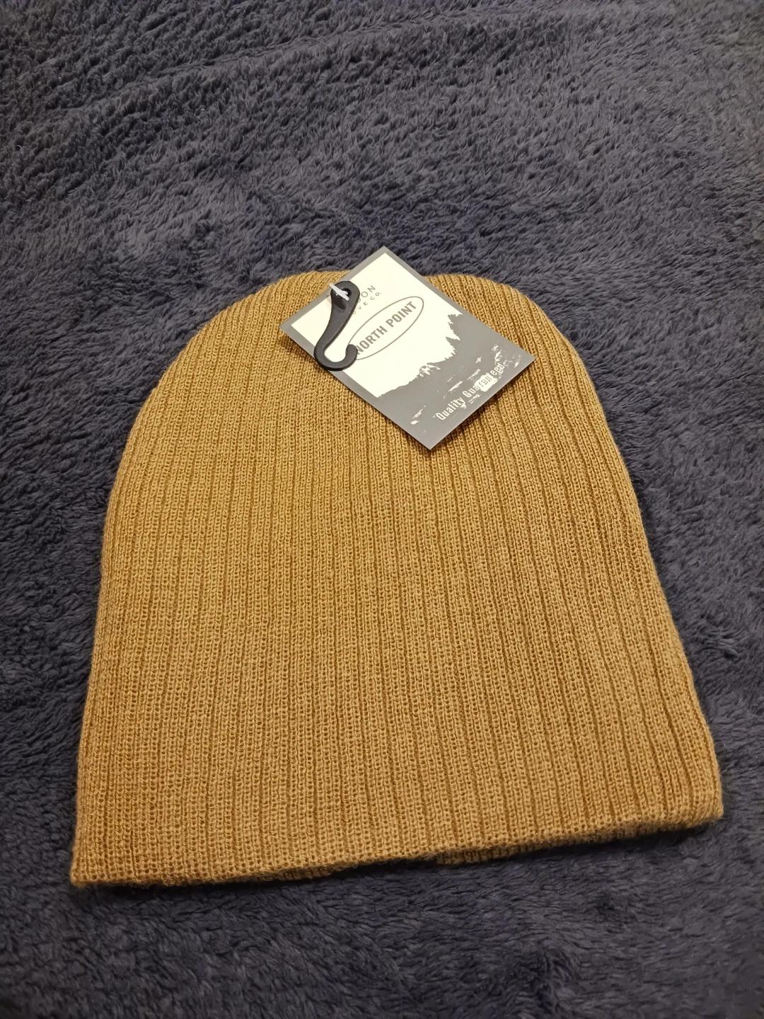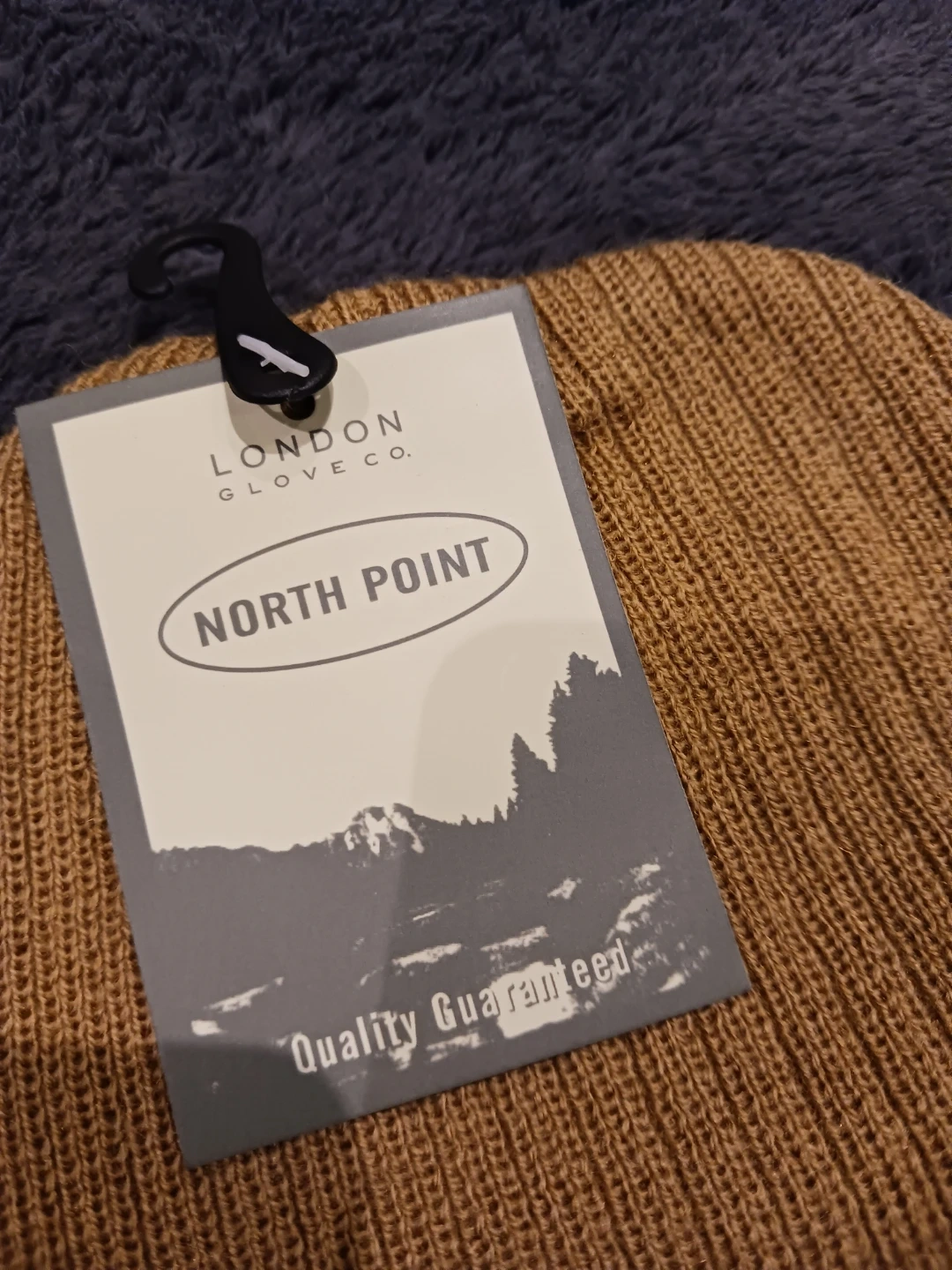 This is a new London Glove Co. North Point beanie. It's a classic ribbed knit hat, perfect for keeping warm. The colour is a nice tan.
