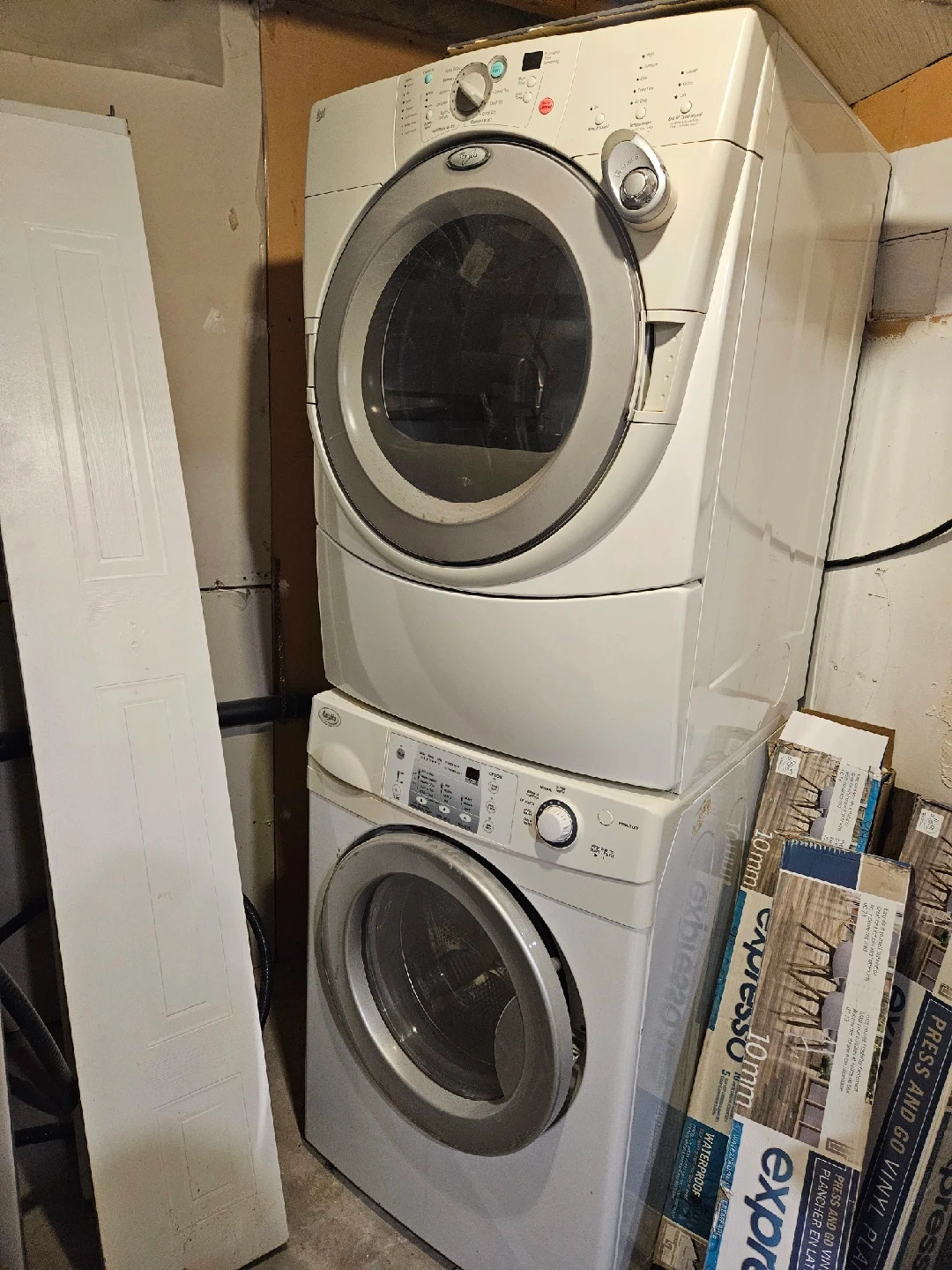 127Selling a Whirlpool dryer (Model YGD9200LW1) stacked on top of an Inglis clothes washer (Model IFWT200TW). Both units are in working condition and ready to go!