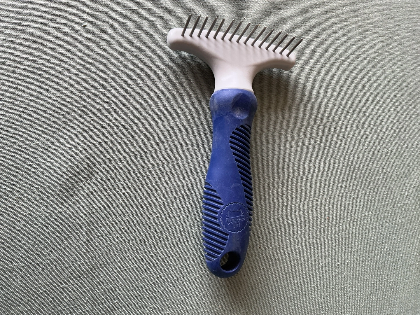 244Giving away a gently used cat grooming comb from Whiskers City. It's perfect for keeping your feline friend's fur looking its best. The comb has a comfortable blue handle and is in good condition for its next home!