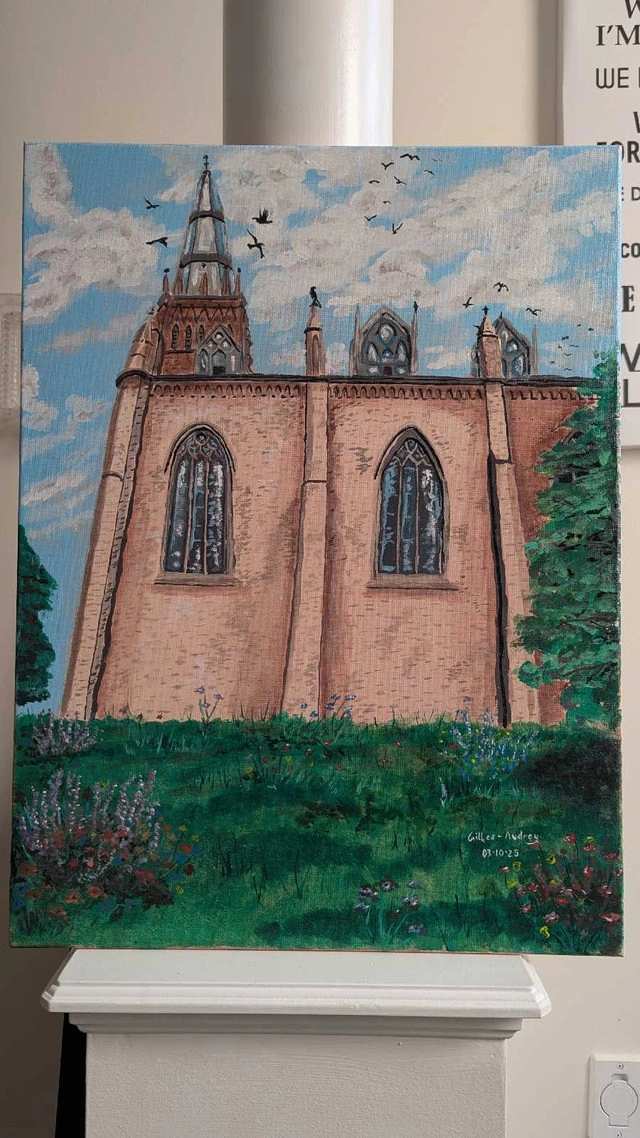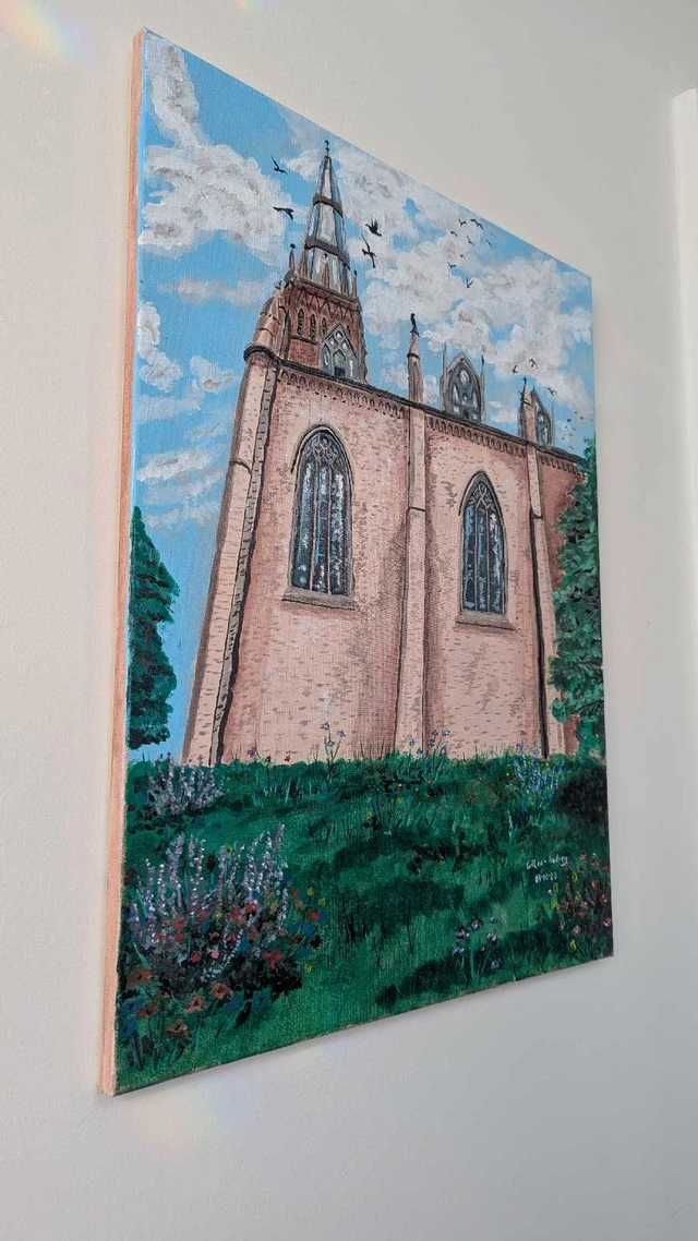 10Step up the walls of your living space with a Gothic church painting with beautiful wildflowers. Acrylic paint on canvas 18in x 24in, varnished with a shiny finish. More Info: Art For Sale By: Owner
