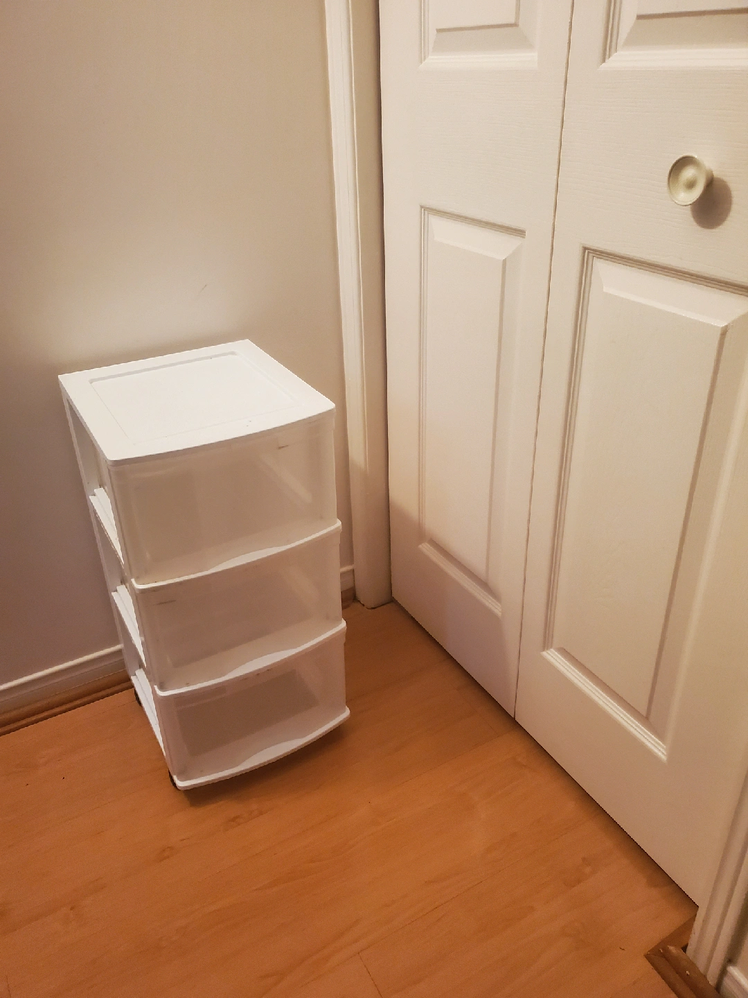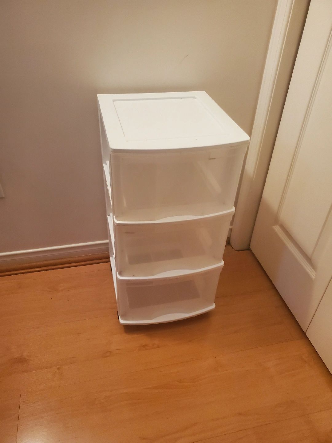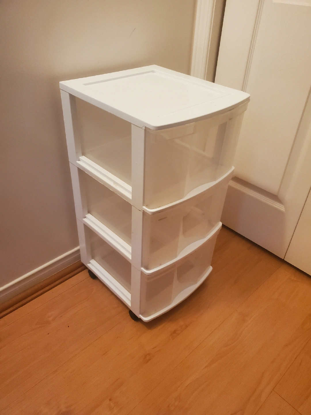 Selling a handy white storage unit with three drawers! It's perfect for organizing clothes, toys, or craft supplies. This unit is in great condition and ready to help you declutter your space