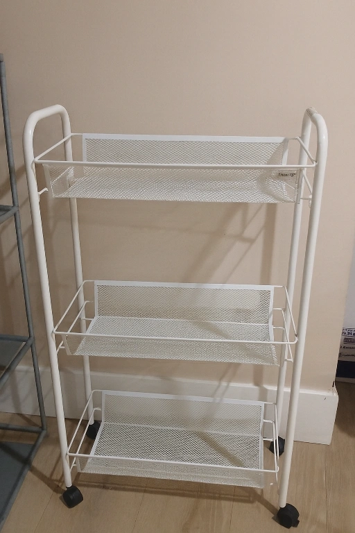 Selling a handy 3-tier rolling cart! It's perfect for adding some extra storage to your kitchen, bathroom, or any room in the house. The cart is white and in great shape, ready to roll into its new home