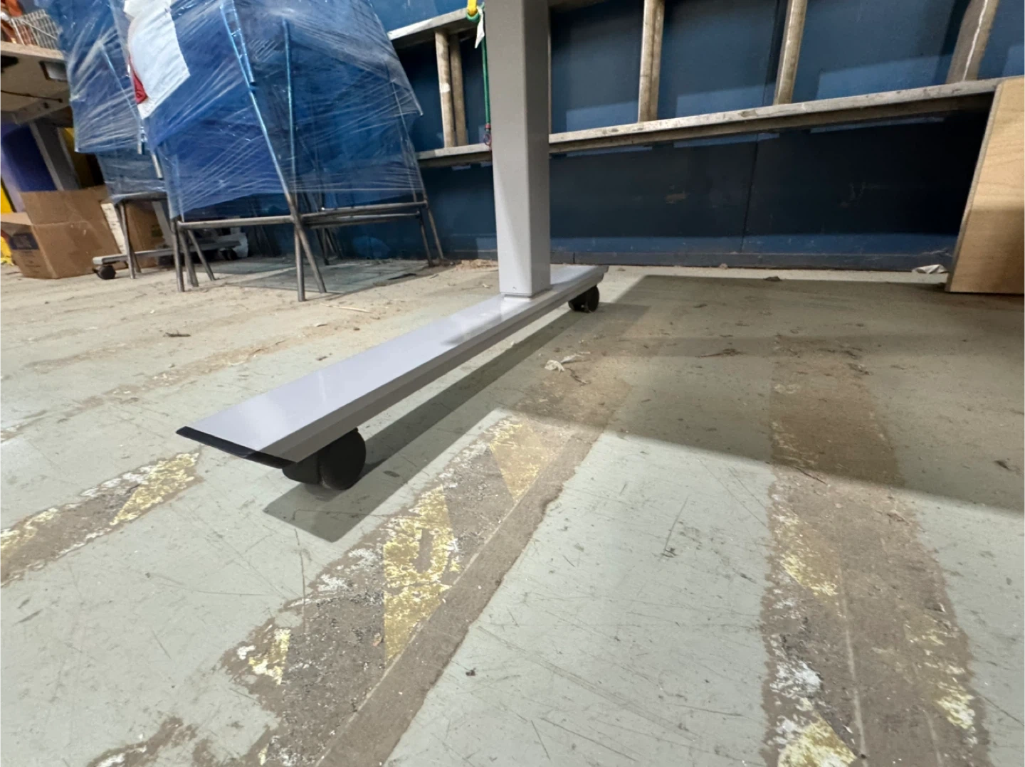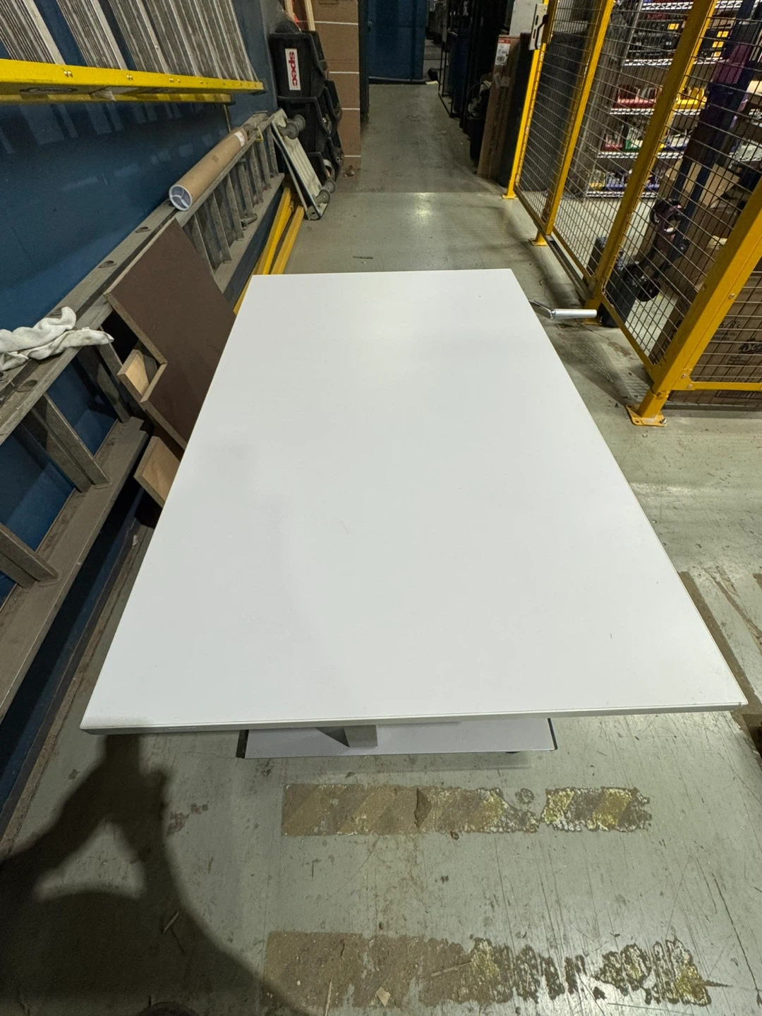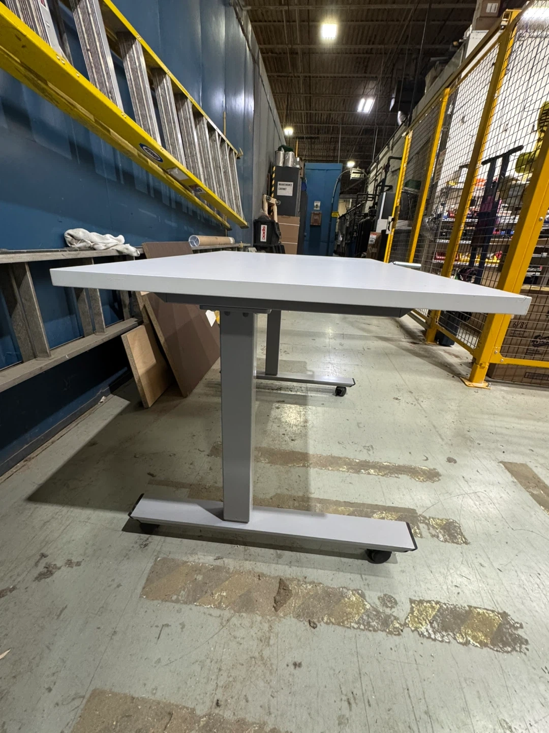 68I'm selling a white adjustable height standing desk. It's in great condition and ready for a new home. Perfect for a home office or workspace! Manual adjustable table, colour white. Works well, no issues. With casters Handle works good. Measurements: Large = 4f 48” Wide = 2.5 f or 30” Hight max = 3.5f or 43.5 “ Lower set max = 2.3f or 28” Base legs = 2.3f or 29.5” YES IT IS AVAILABLE!