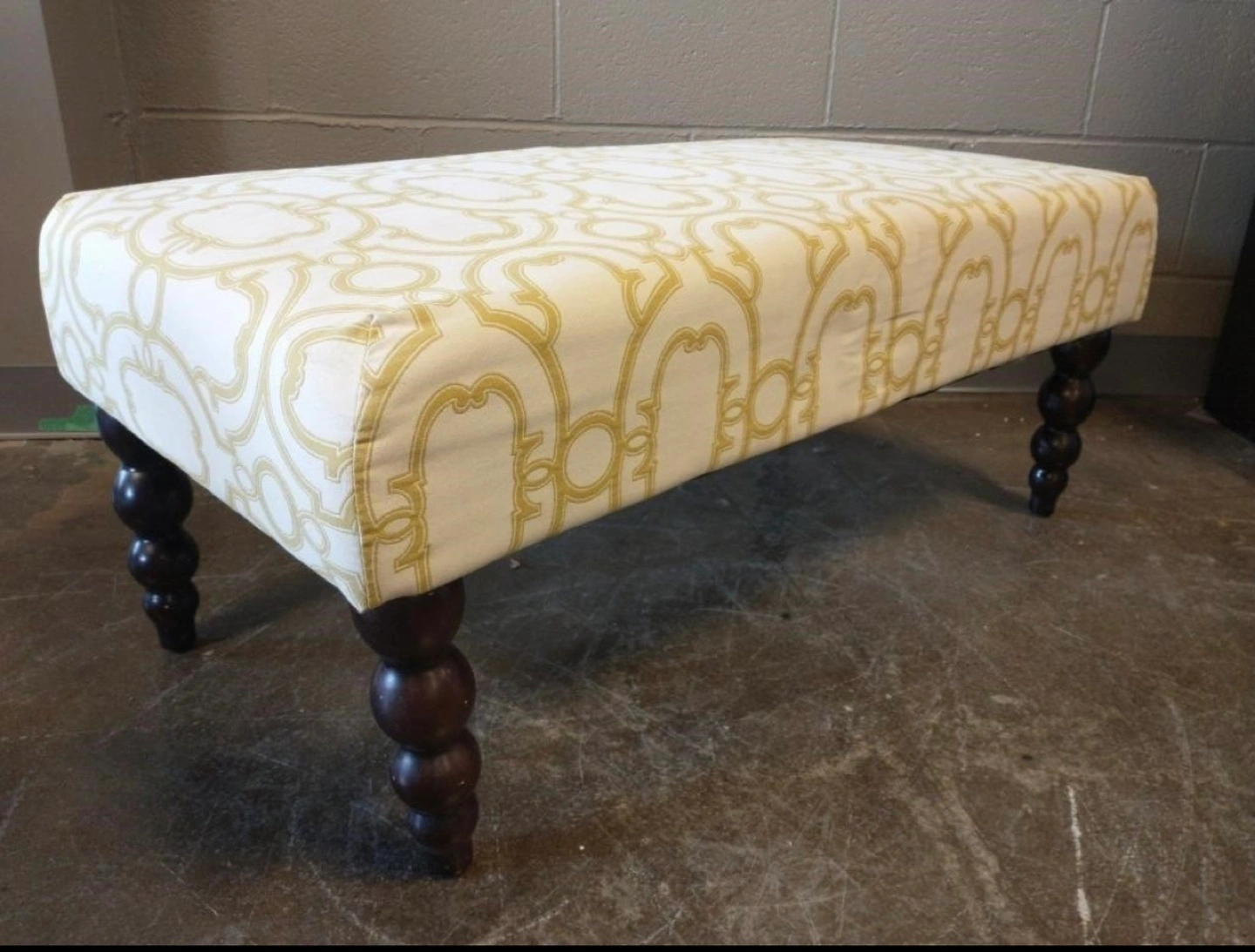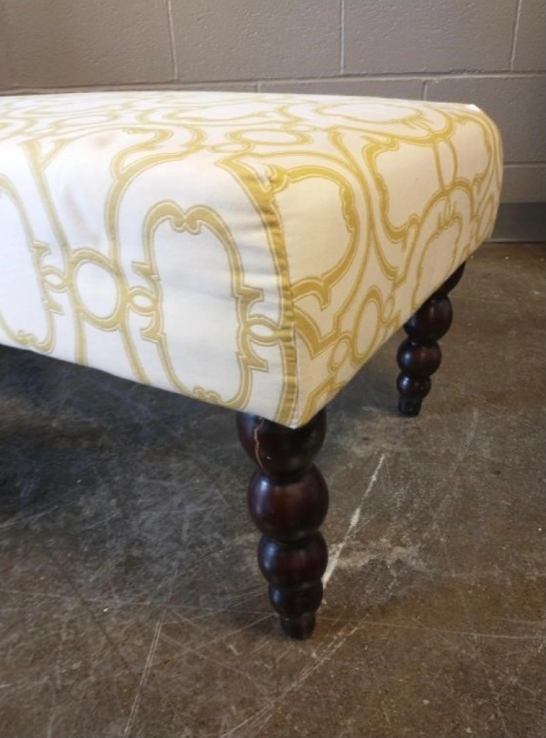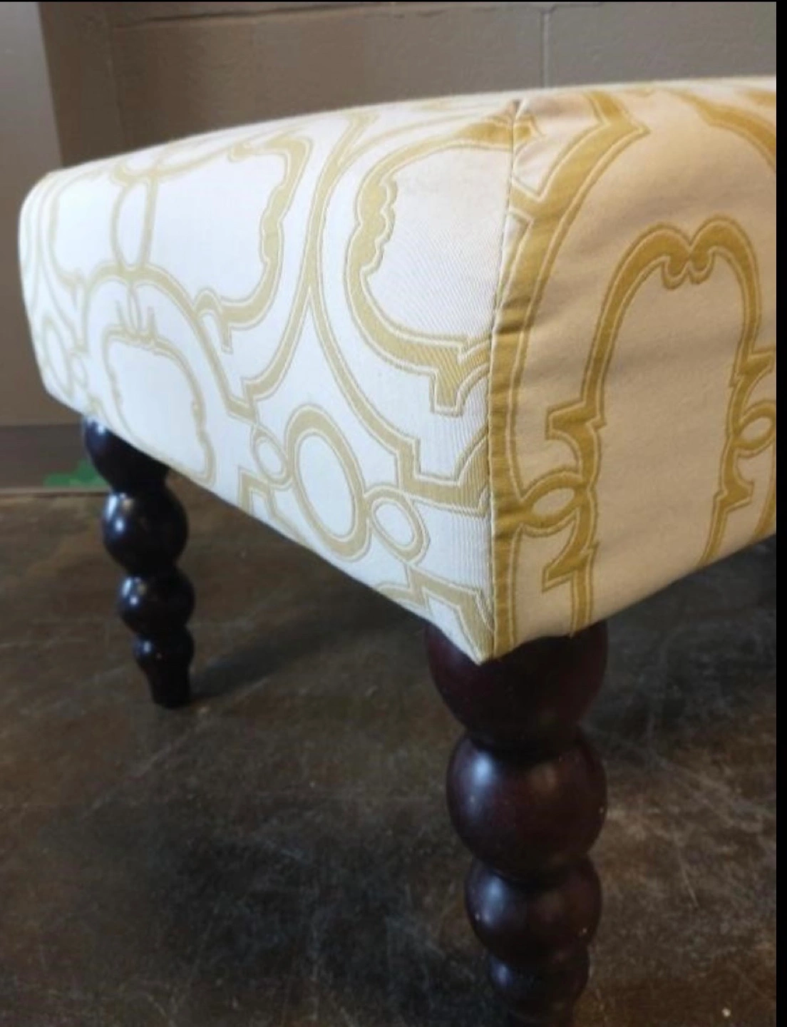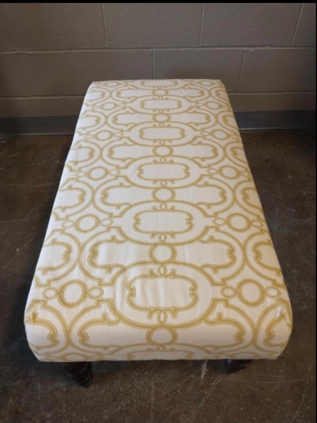 White and Gold Upholstered Ottoman