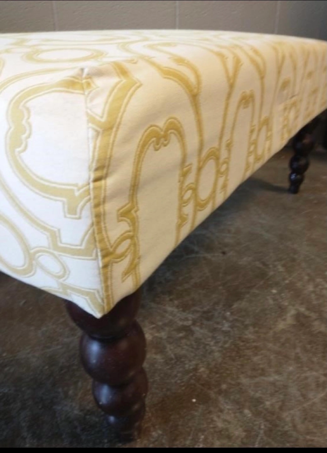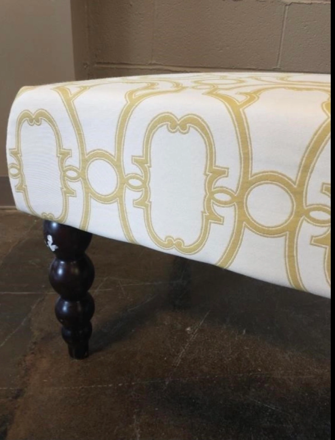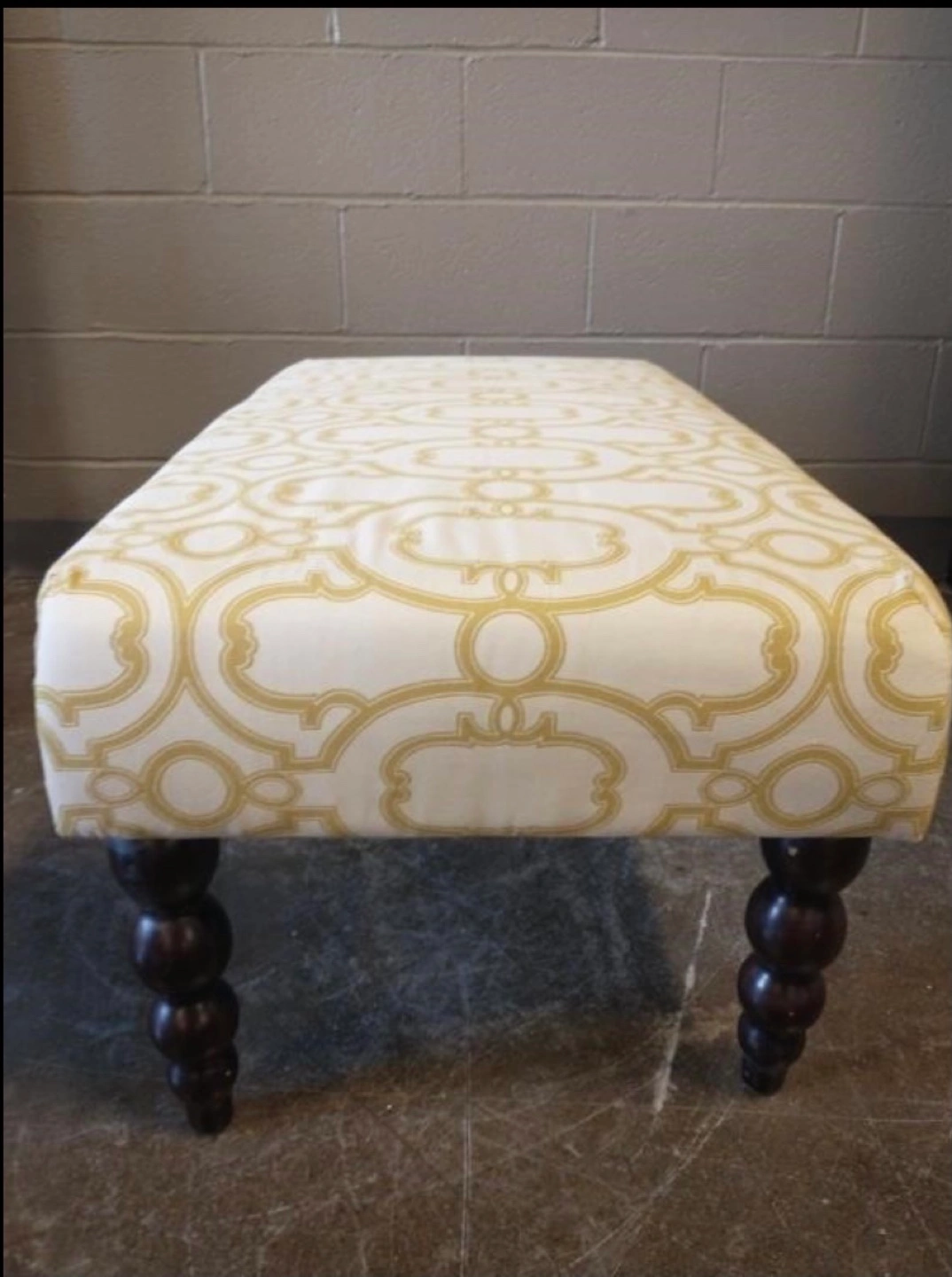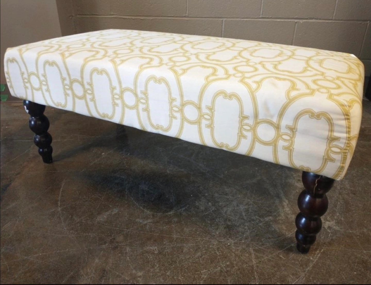 White and Gold Upholstered Ottoman