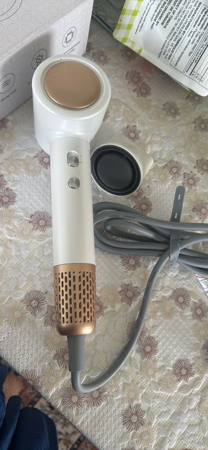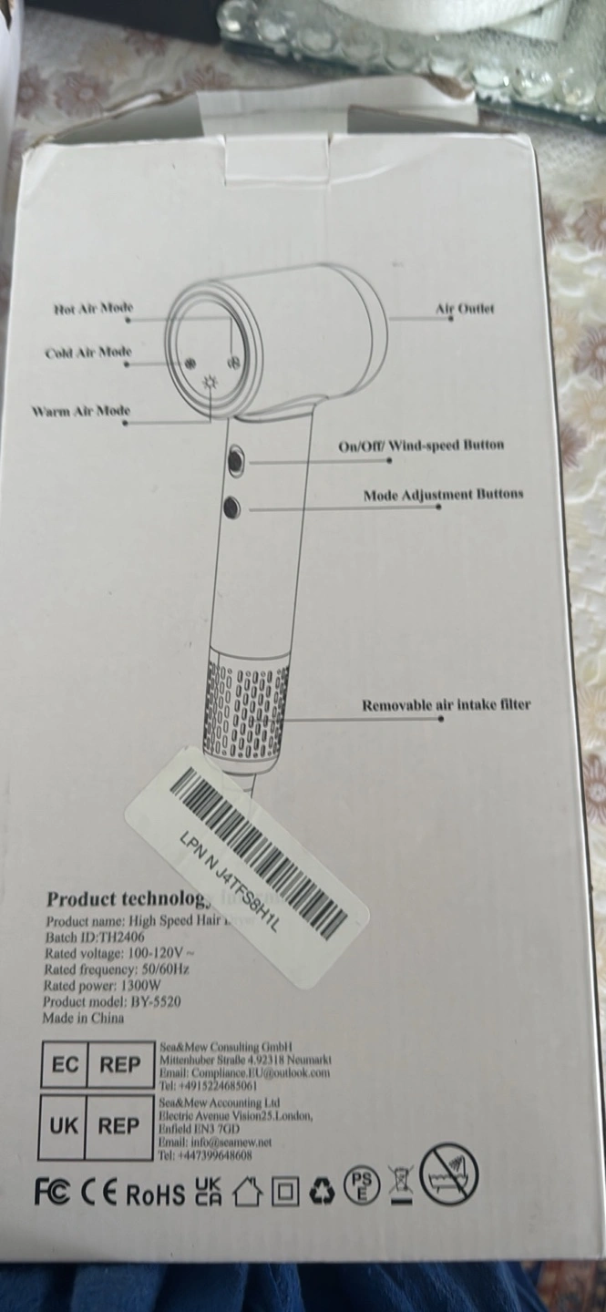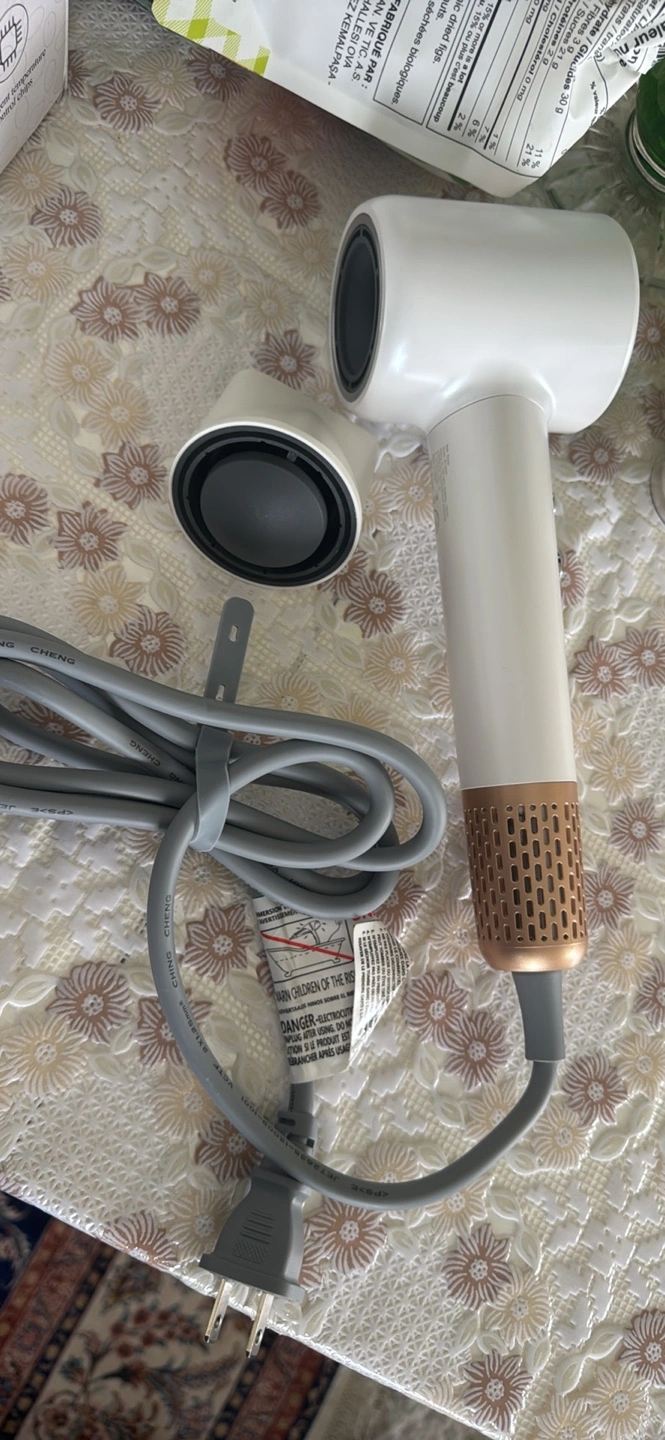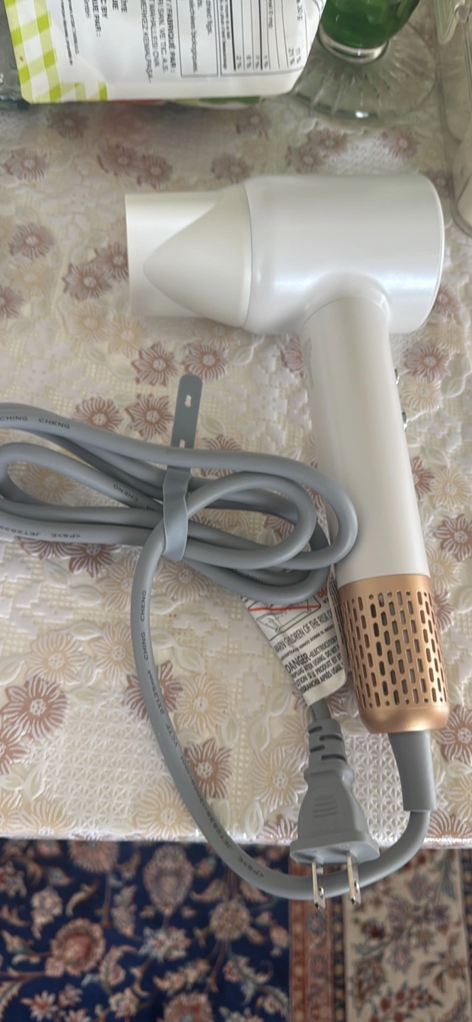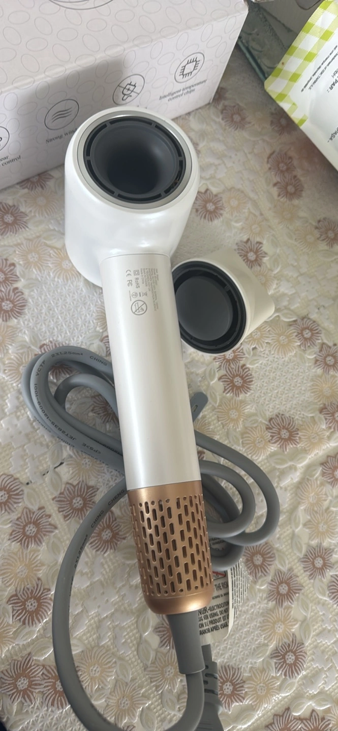 44New hair dryer. Rose gold and white colour. Includes concentrator nozzle. Features multiple heat and speed settings. Three heat settings, cool shot button.