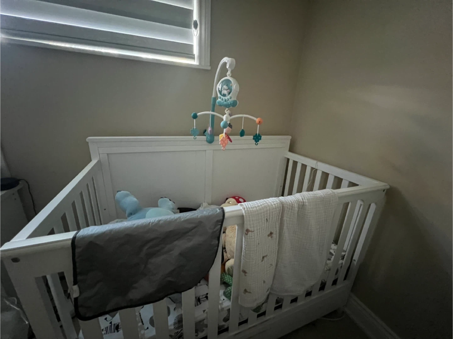 Selling a gently used white baby crib. It's in good condition and ready for a new home. Perfect for your little one's nursery! Crib with good quality mattress.
