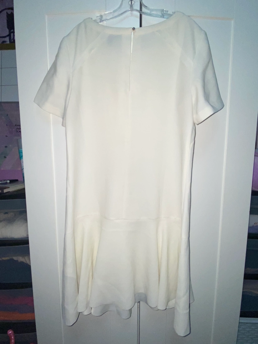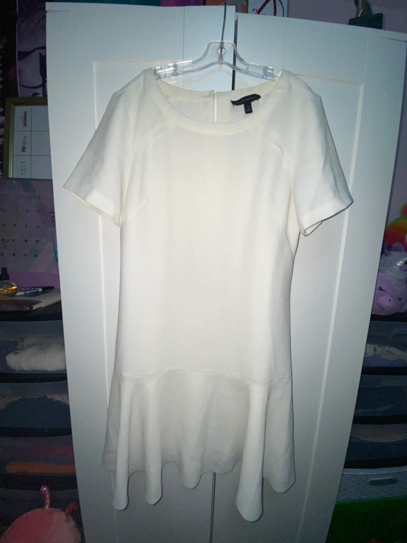 Elegant cream white Banana Republic dress. Very cute cut with a ruffled hemline!
