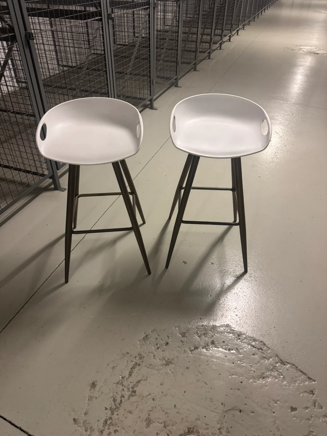Selling a set of two bar stools! They're in great shape and would look fantastic in any kitchen or bar area. The stools are white with dark legs, adding a modern touch to your space. Perfect for adding extra seating to your home!