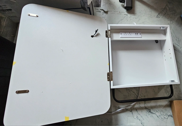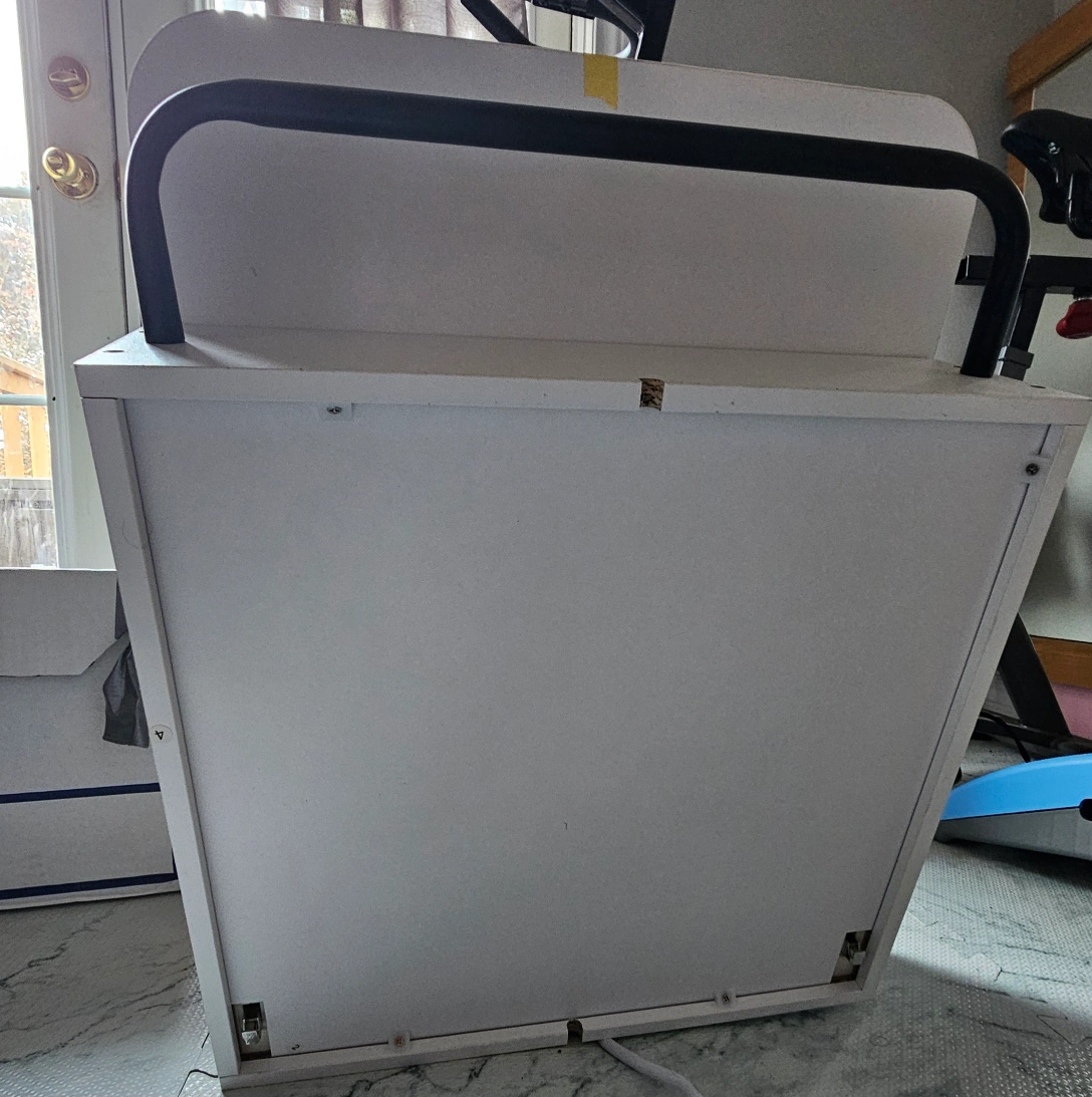 119Selling a bathroom cabinet with a lighted mirror! It's white and in good condition. It features a fold-out top and includes a built-in power outlet with USB ports for your convenience. Perfect for getting ready! mirror slightly chip at bottom right see picture