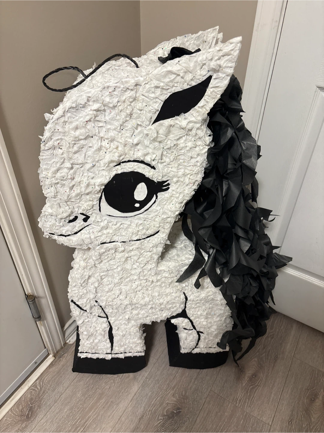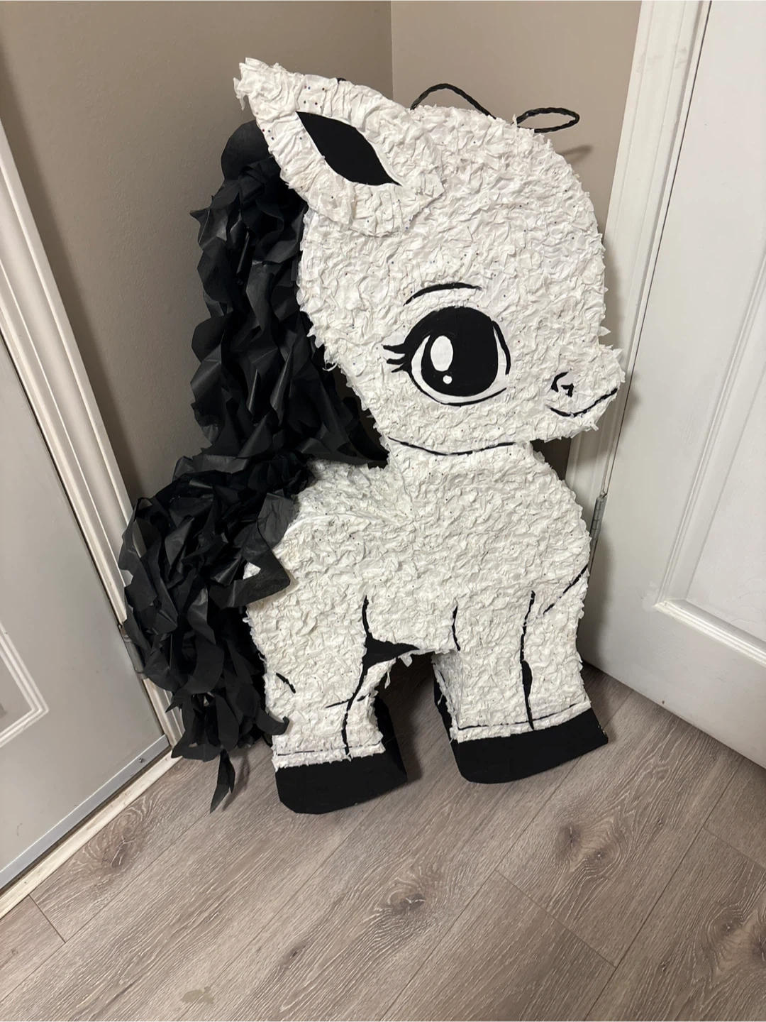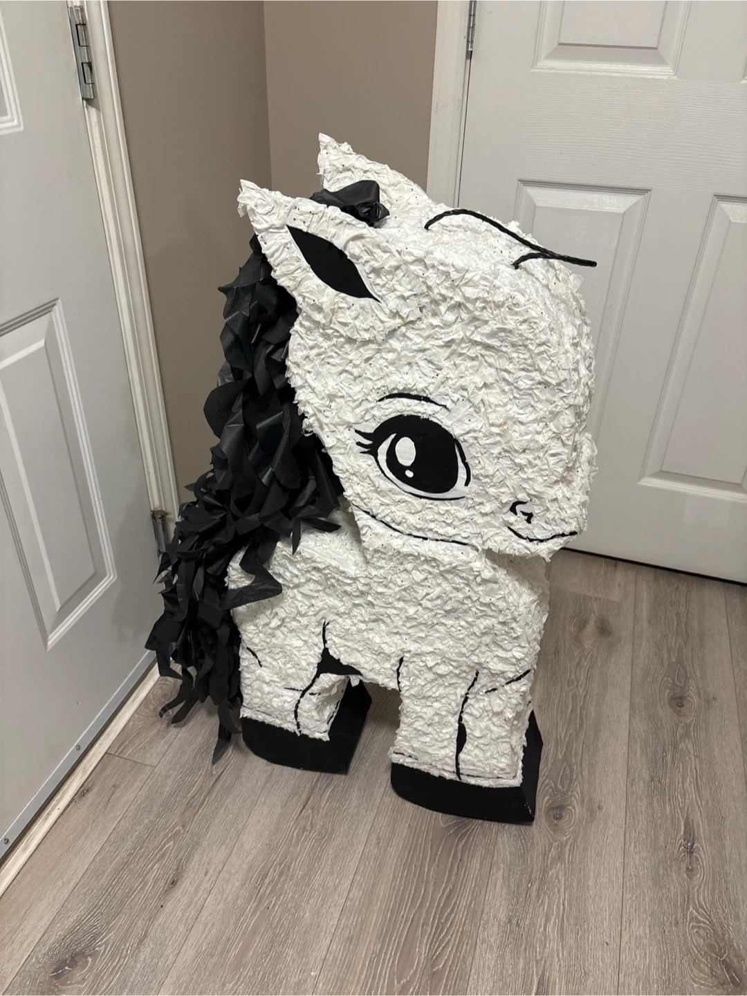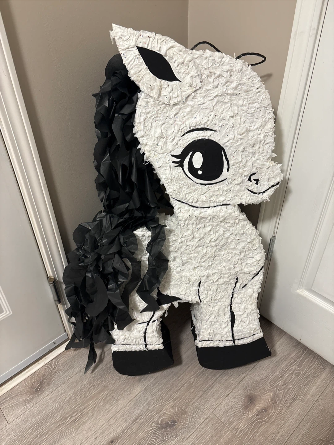 17Here's a fun pony piñata, ready for your next party! It's white with a black mane and tail. Perfect for a birthday or special event brand new printed on both size ready sides get ready for party pick up walnut grove Langley