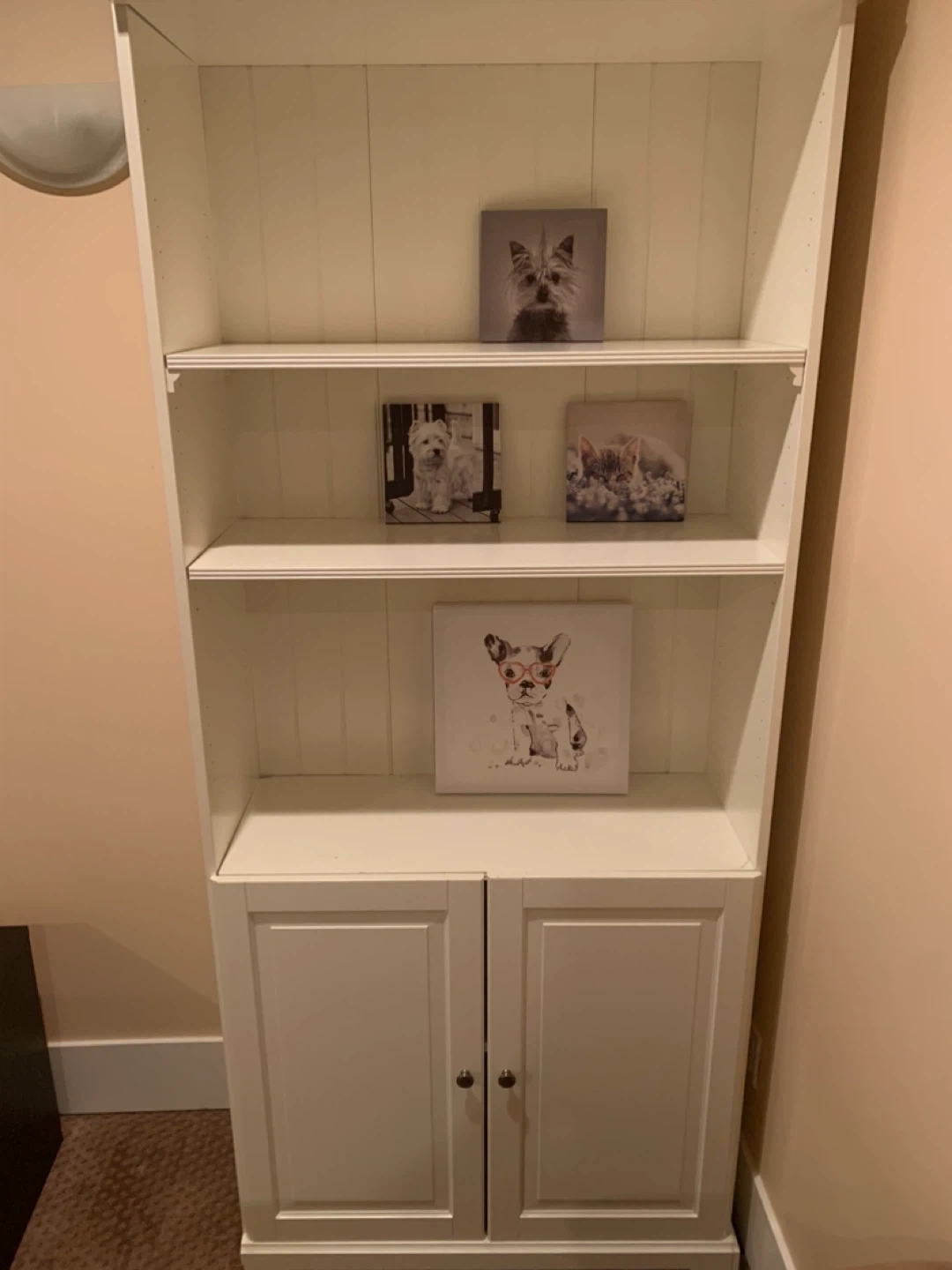16A charming white bookcase, perfect for adding storage and style to any room! It features multiple shelves for displaying books, photos, or decorative items, and a cabinet with doors at the bottom for concealed storage. It’s in great condition and ready for a new home