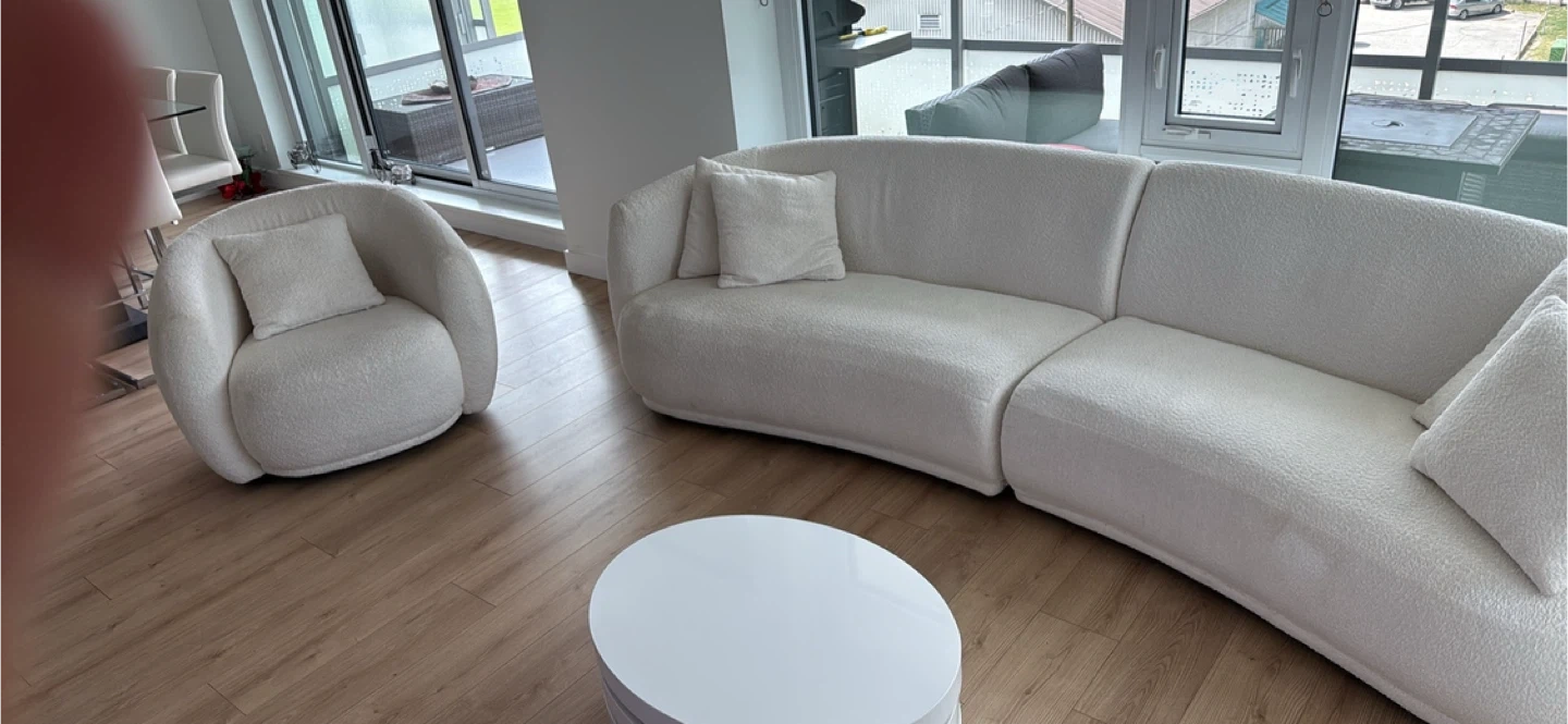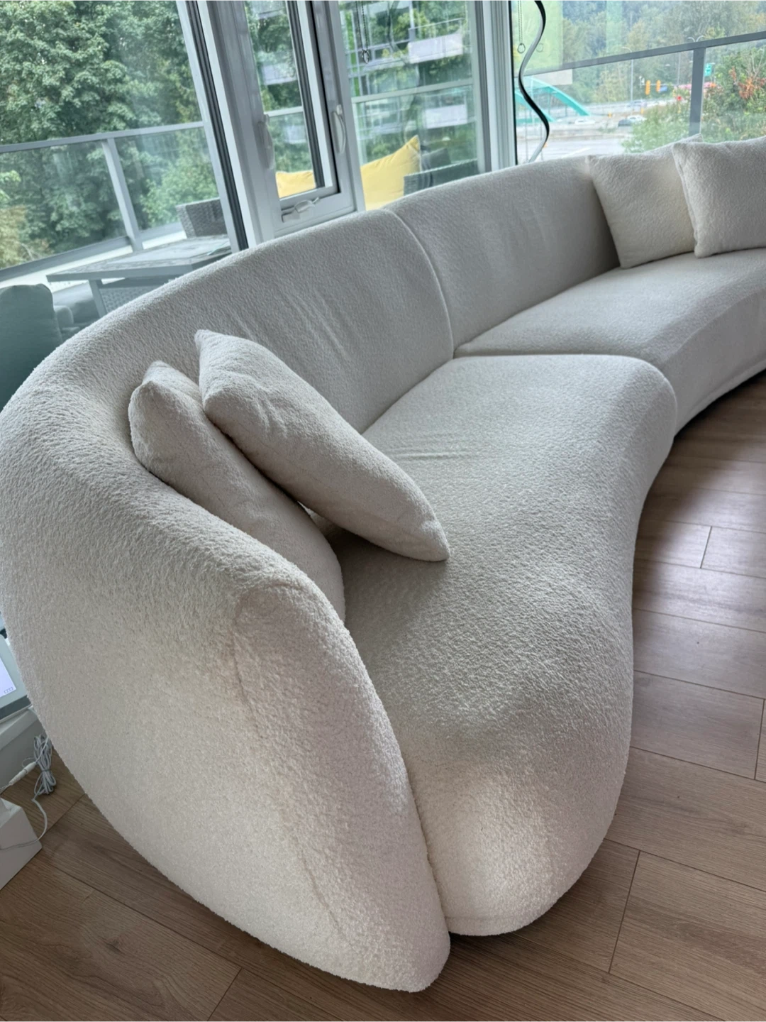 15Selling a stylish set including a boucle sofa, The boucle material gives a soft, textured look, and the bright white colour will brighten any space. A perfect addition to any living room! 18 months old still have over three years warranty on it. Urgent moving sell.