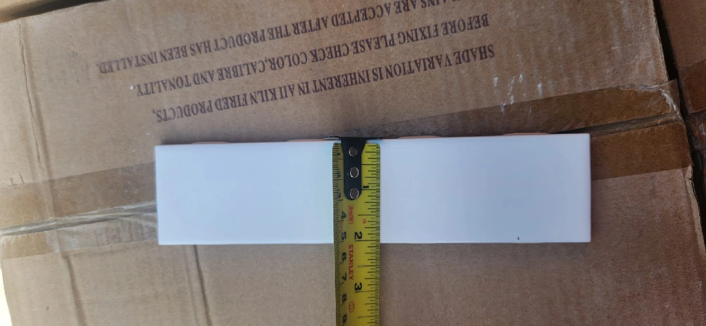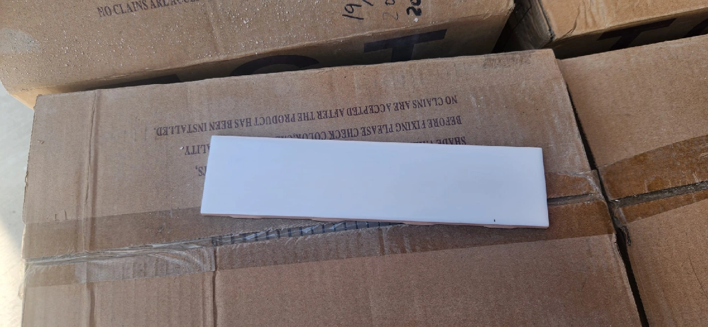 5Selling a matt white ceramic tile, perfect for any home project! It's about 2 inches wide and 8 inches long, 1/4" thick 14 full boxes, 100pcs/bx, total of 165 ft2