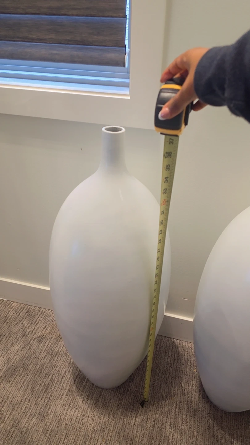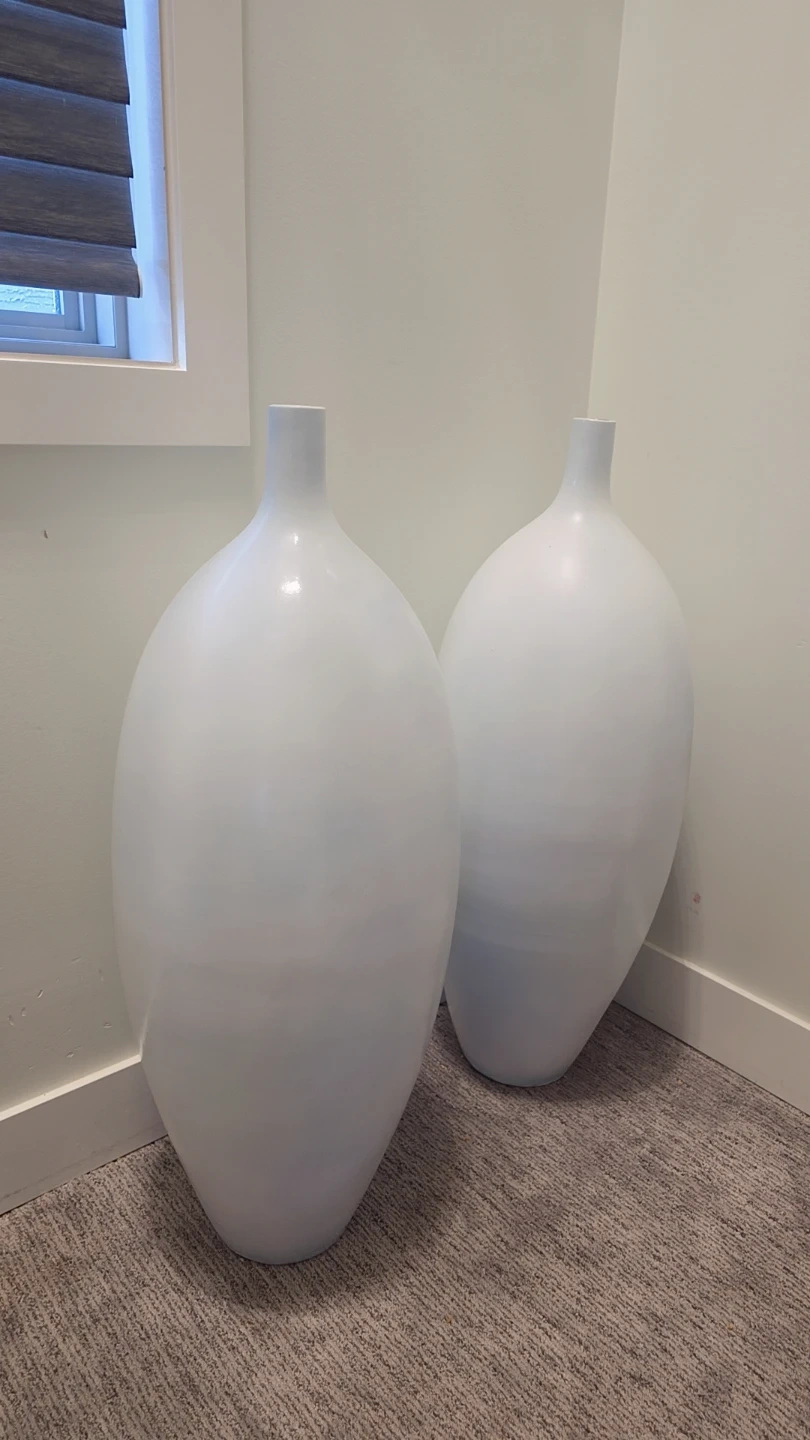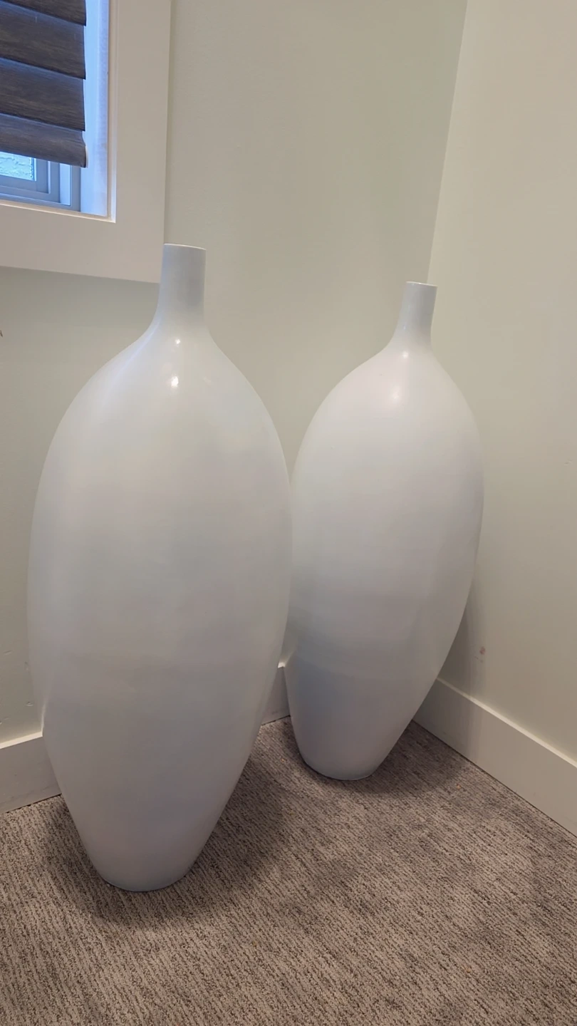 10Selling a set of two beautiful white ceramic vases! They are in great condition and would look lovely in any home. One vase is approximately 36 inches tall. They add a touch of elegance and simplicity to any space