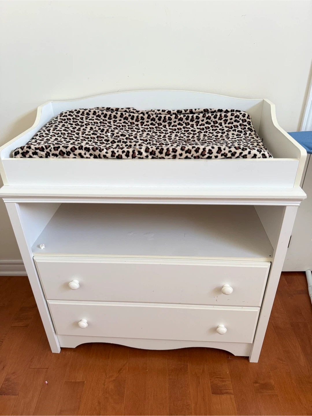 Changing table in good condition! It features two drawers for storage and a shelf to keep all your baby essentials organized.