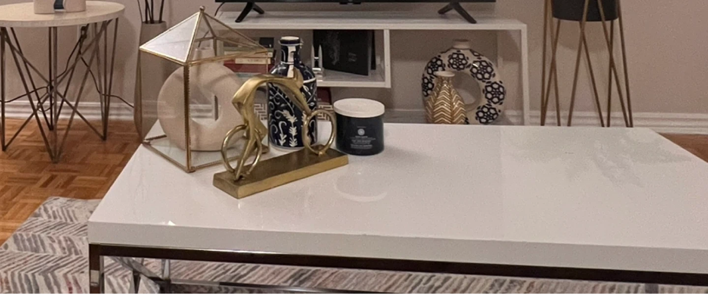 38Selling a coffee table. It has a sleek, modern design that would look great in any living room. The table is in good condition and ready for a new home! Using it as a tv stand to keep my toddler away from the tv.