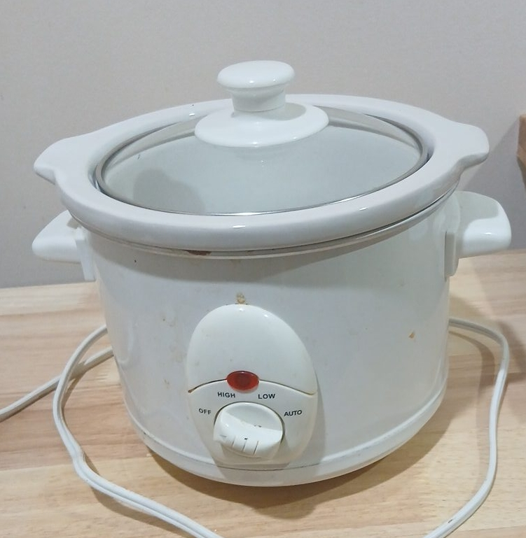 Selling a white Crock-Pot slow cooker! It's in good condition and perfect for making soups, stews, and other delicious meals. It comes with a glass lid and has settings for high, low, and auto