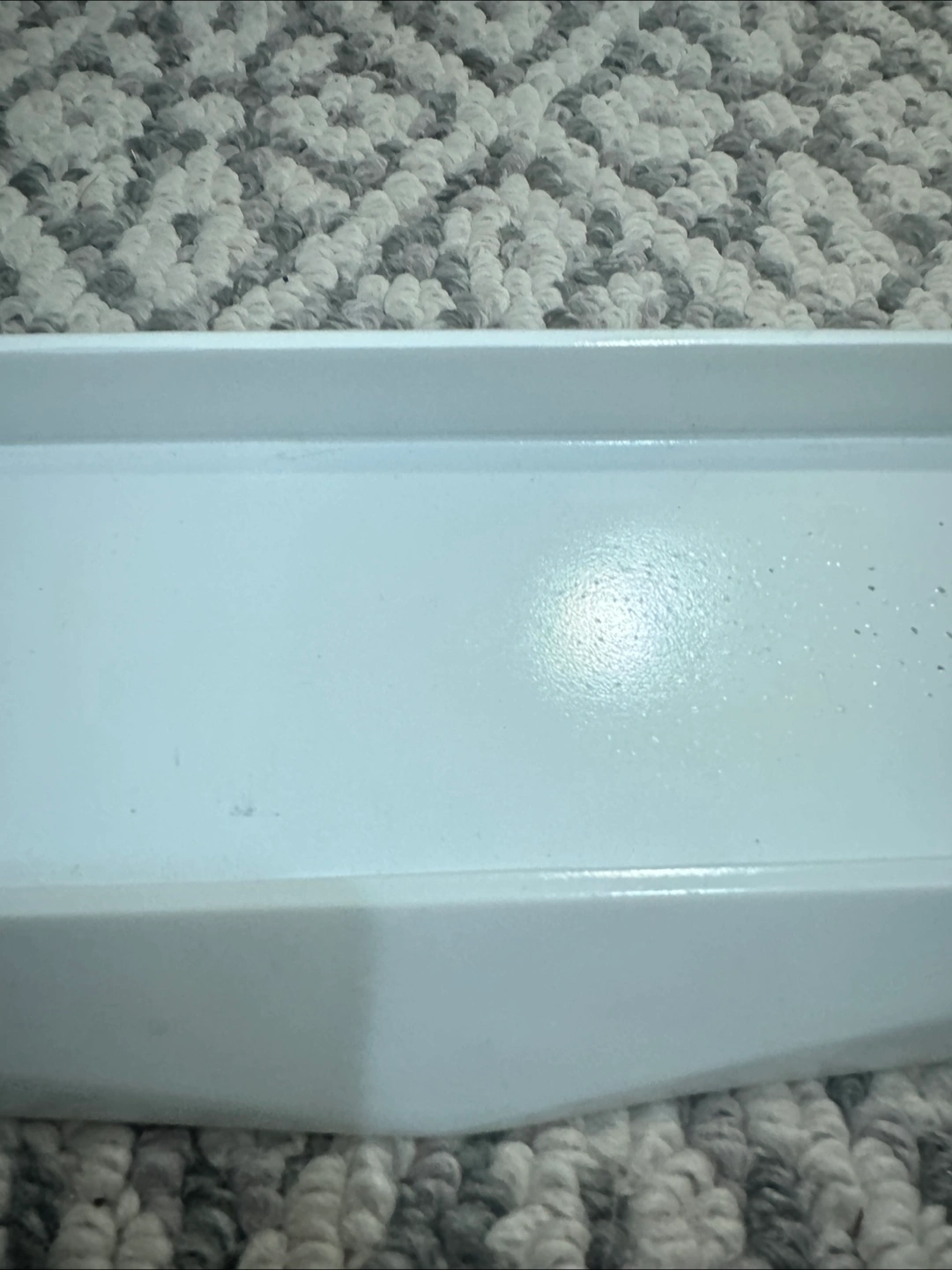 I'm selling a rectangular white tray. It has a slightly angled design. The tray could be used to hold small items. To arrange your items on the tray is a great way to bring some calm to your day.
