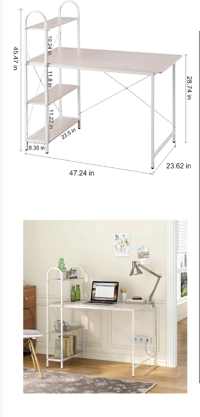 Looking to sell this desk with an attached bookshelf! It's in great shape and ready for a new home. The desk is 47.24 inches wide and 23.62 inches deep, with a height of 28.74 inches. The bookshelf adds an extra 46.47 inches in height, and the shelves are spaced 10.24, 11.8, and 11.22 inches apart. It's a great space-saving option! i have already dismantled it and ready for pickup!